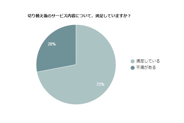 電力会社の切り替え後のサービス内容について満足しているかを調査すると、72%の方が「満足している」と回答しました。