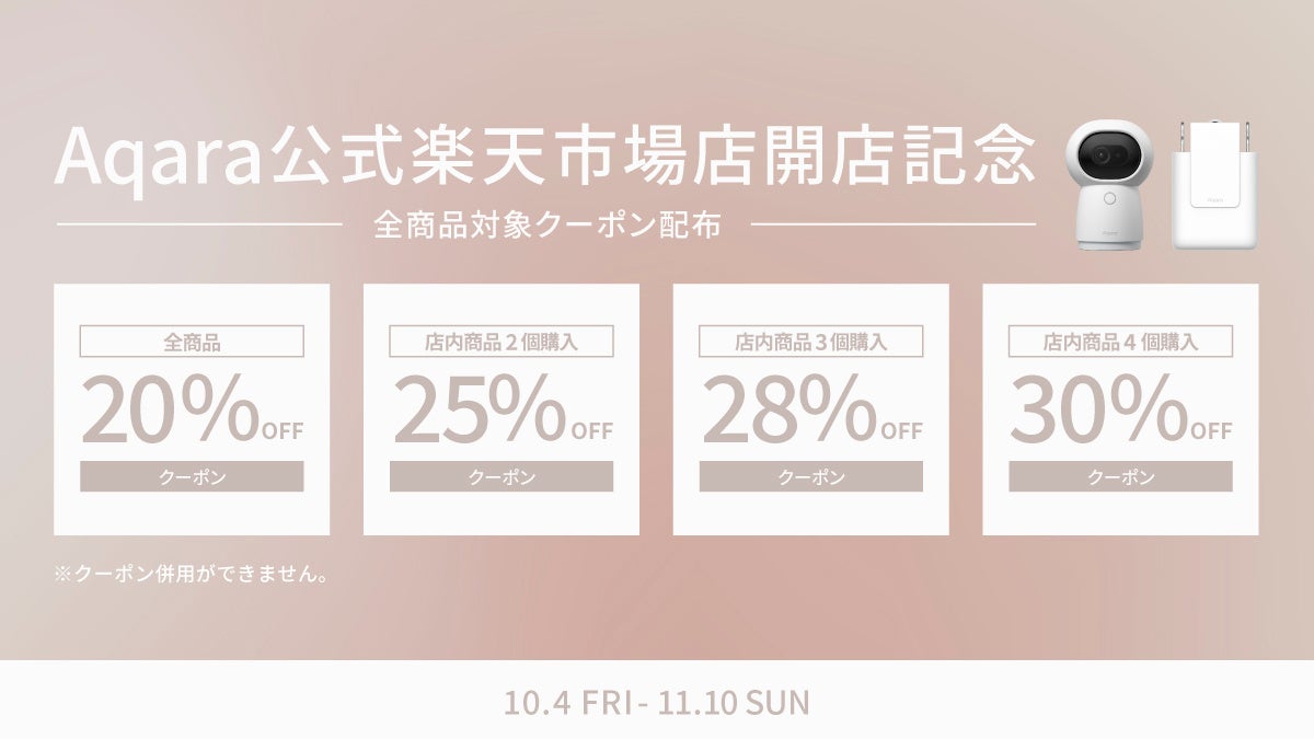lotスマートホームデバイスブランド「Aqara」楽天市場公式ストアオープン記念キャンペーンを開催!店内購入数に応じて、全商品最大30%OFFクーポンを配布