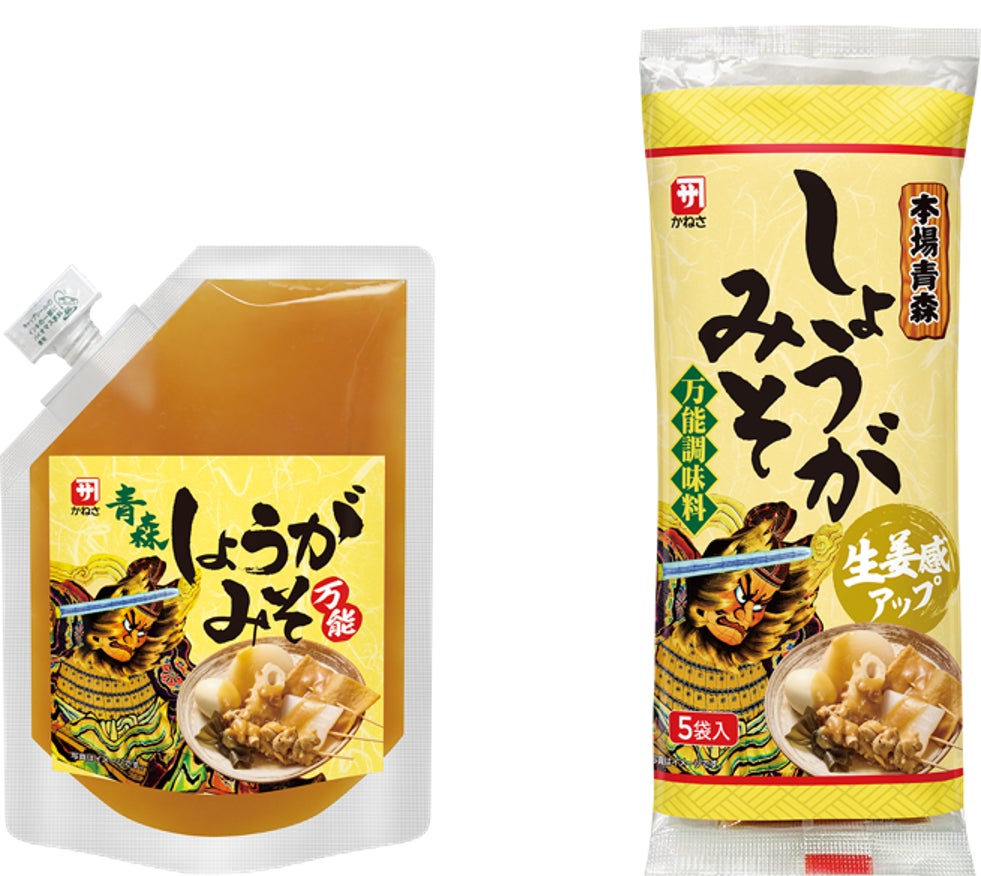 青函連絡船に端を発する青森のしょうがみそ。かねさが、国産しょうがと香りにこだわり2種類のパッケージで展開します。