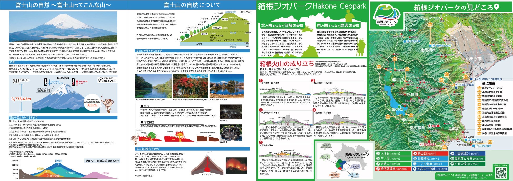三島スカイウォークから望む富士山について、基本的な知識や誕生の歴史、世界遺産として認められた経緯などを学べます。また、三島スカイウォークが位置する“伊豆半島ユネスコ世界ジオパーク”や“箱根ジオパーク“などの三島スカイウォーク周辺の自然環境について解説したパネルを展示します。