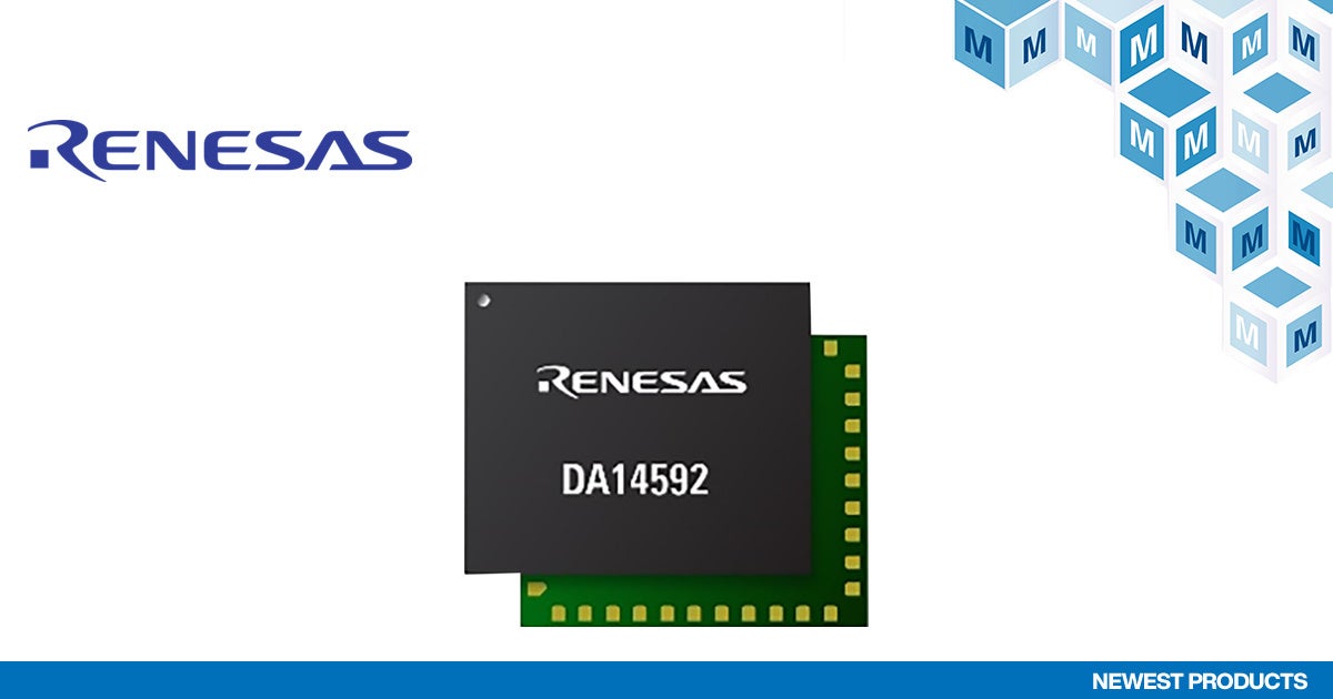 マウザー、RenesasのDA14592 SmartBond™フラッシュ内蔵マルチコア Bluetooth® Low-Energy5.2 システムオンチップの取り扱いを開始