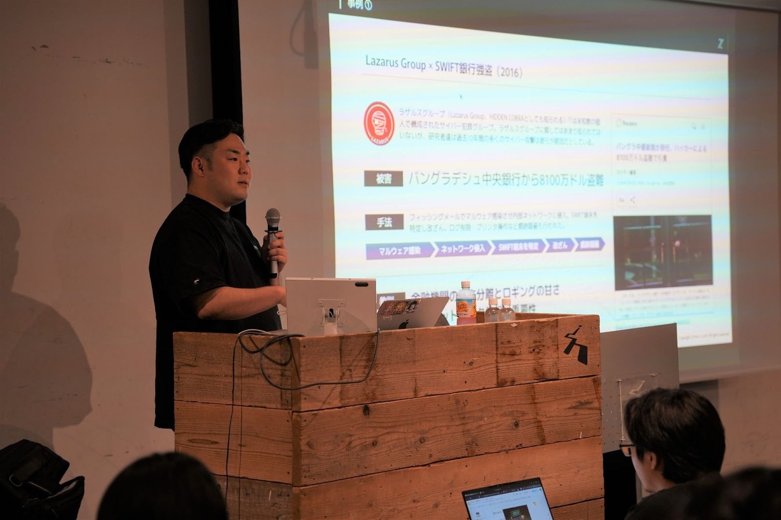 第一部の特別講義では、同大学のハッカー部顧問を務める田中が、実際のサイバー攻撃事例を紹介し、攻撃手法や被害の実態について解説しました。取り上げた主な事例は以下のとおりです。