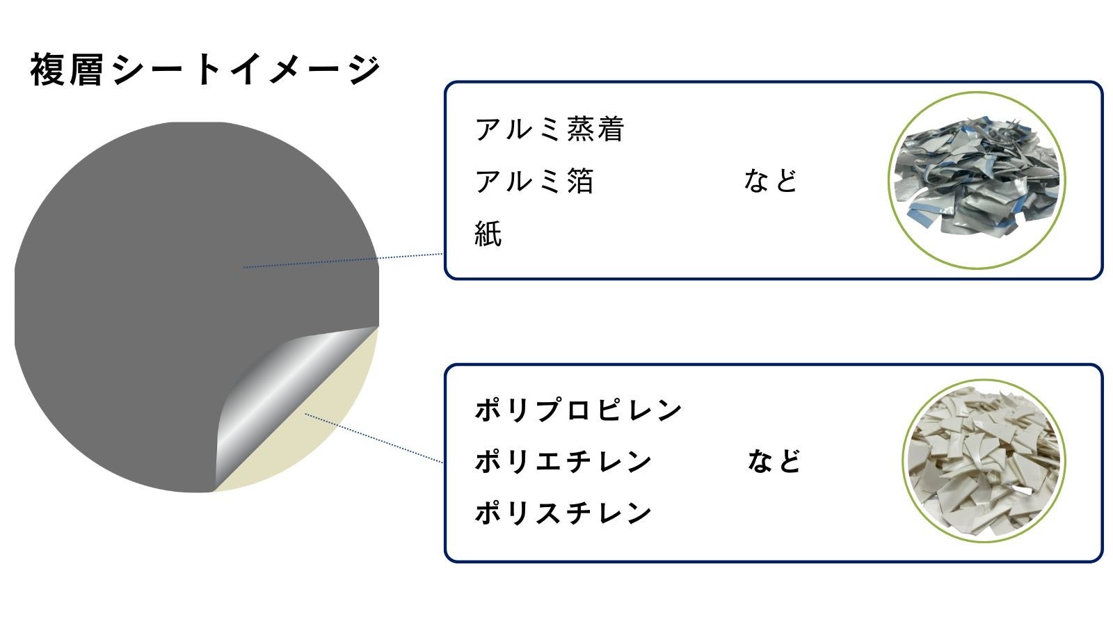 複層シートは耐久性や遮光性といった優れた特性をもっていますが、異なる素材の多層構造のため、通常の単一素材のプラスチックよりもマテリアルリサイクルが難しく、多くはサーマルリサイクルに依存しています。私たちは、新たな設備を導入しこの複層シートのマテリアルリサイクルにチャレンジすることにしました。