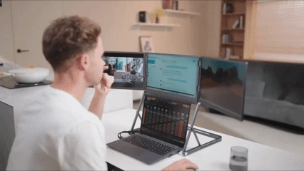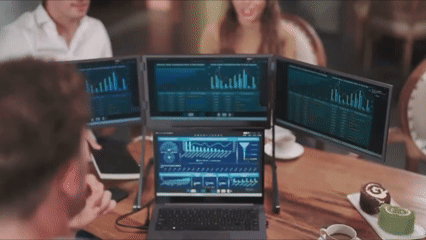 トリプル3面ディスプレイで作業効率を一気に向上。一瞬で立体3画面に。資料・作業・チャットを同時表示し、探す時間を削減します。折りたたんで持ち運べるTriCreate。USB-C1本で接続でき、外出先でも快適な作業環境を実現。どんな場所でも、いつもの効率をそのままに。テレワークも効率的に作業可能。