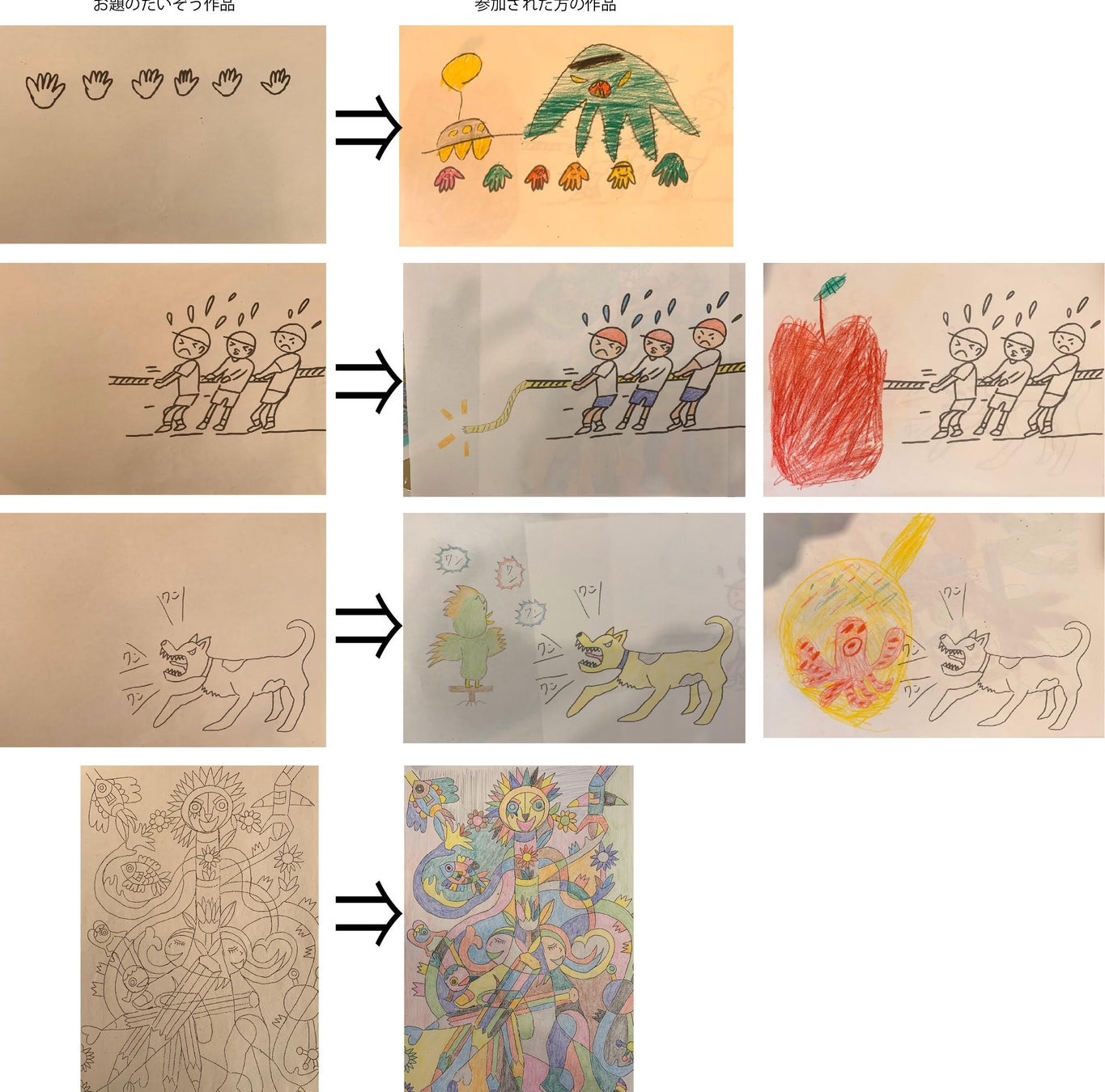 みんなで楽しくお絵描きしましょう!塗り絵もありますし、絵の大喜利のわくわくワークショップ!