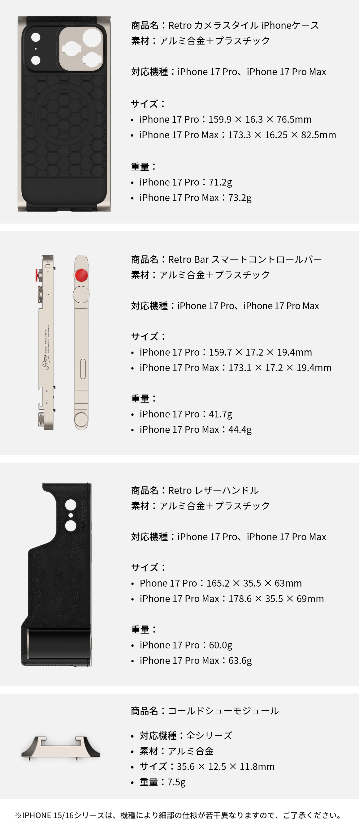 モバイル撮影機材の革新を続ける「Fotorgear」は、iPhoneをクラシックカメラのような操作感と外観へと変貌させる撮影システム「Fotorgear Retro DMF」の最新ラインナップを発表いたします。 既存のiPhone 15/16 Proシリーズに加え、次期「iPhone 17 Pro / Pro Max」対応モデルを新たに追加。さらに、プロ仕様の「75mmマクロレンズ」と「2X望遠レンズ」も同時リリースいたします。