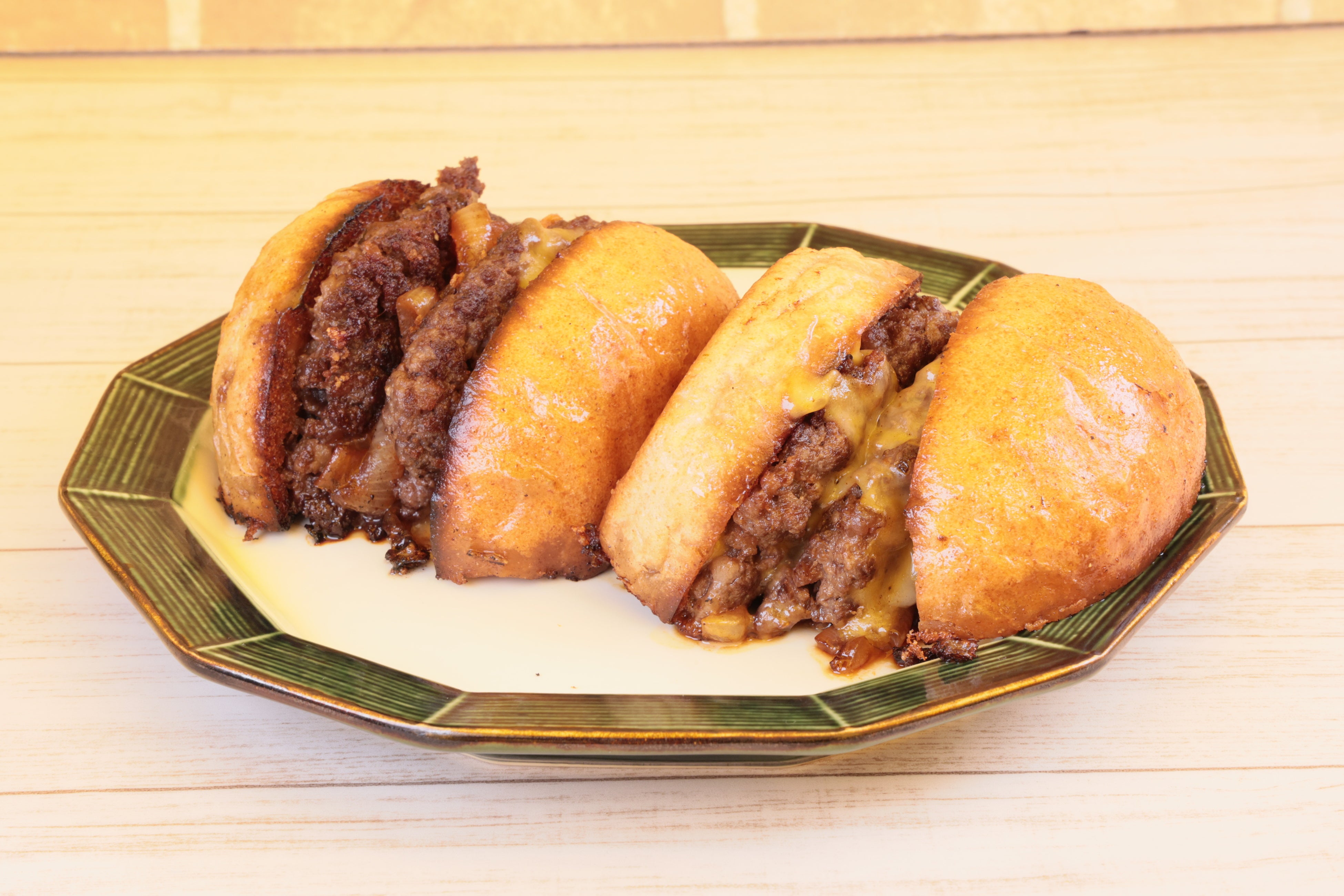 バンズの断面を鉄板で二度焼きし、肉汁と香ばしさを閉じ込めた、和テイストのてりやきバーガーが完成しました。