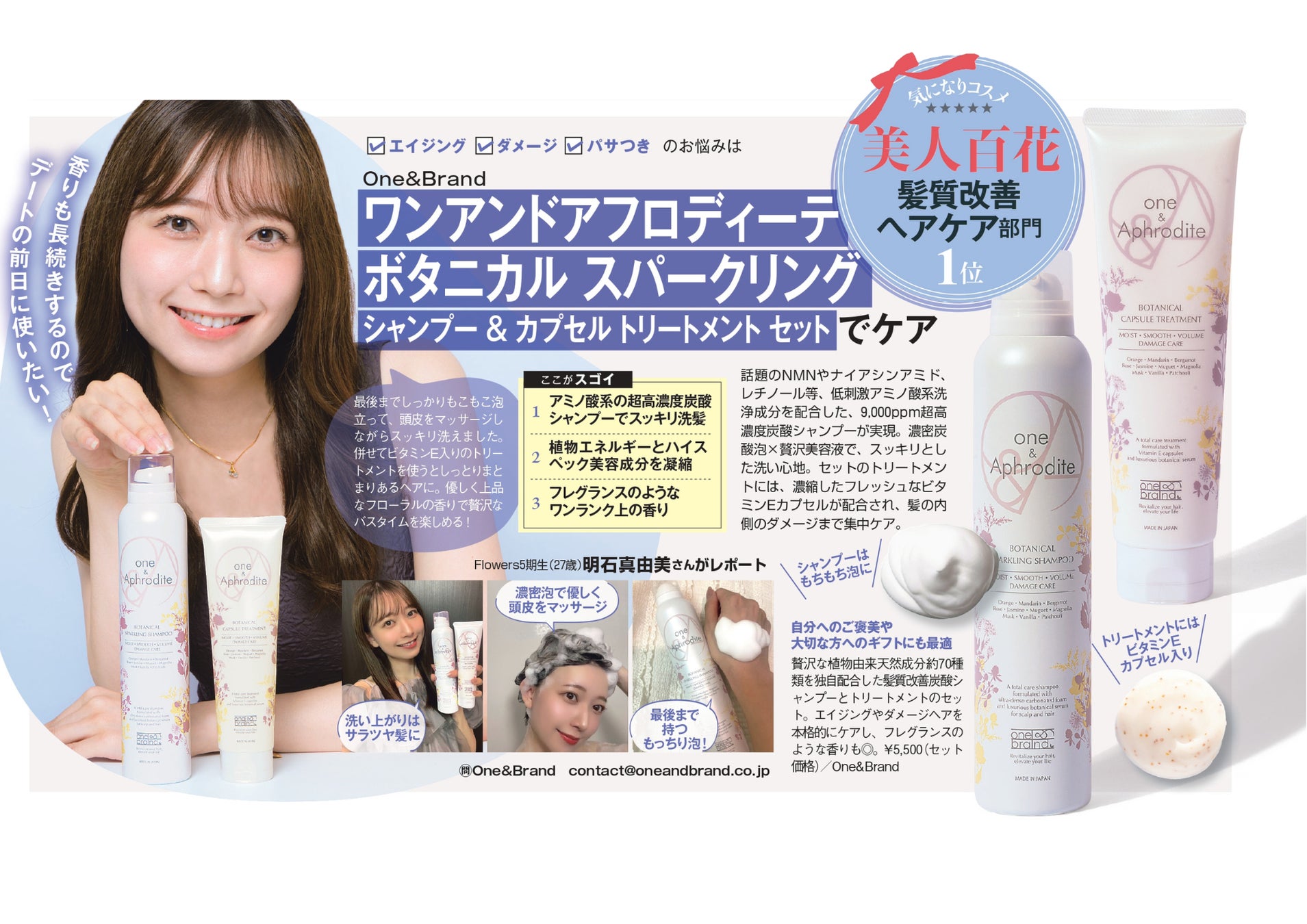 頭皮のにおいやべたつきをケアし、清楚な「夏髪」に導いてくれる、one&Aphroditeのヘアケアセットが@cosme TOKYOにて期間限定価格で販売中!