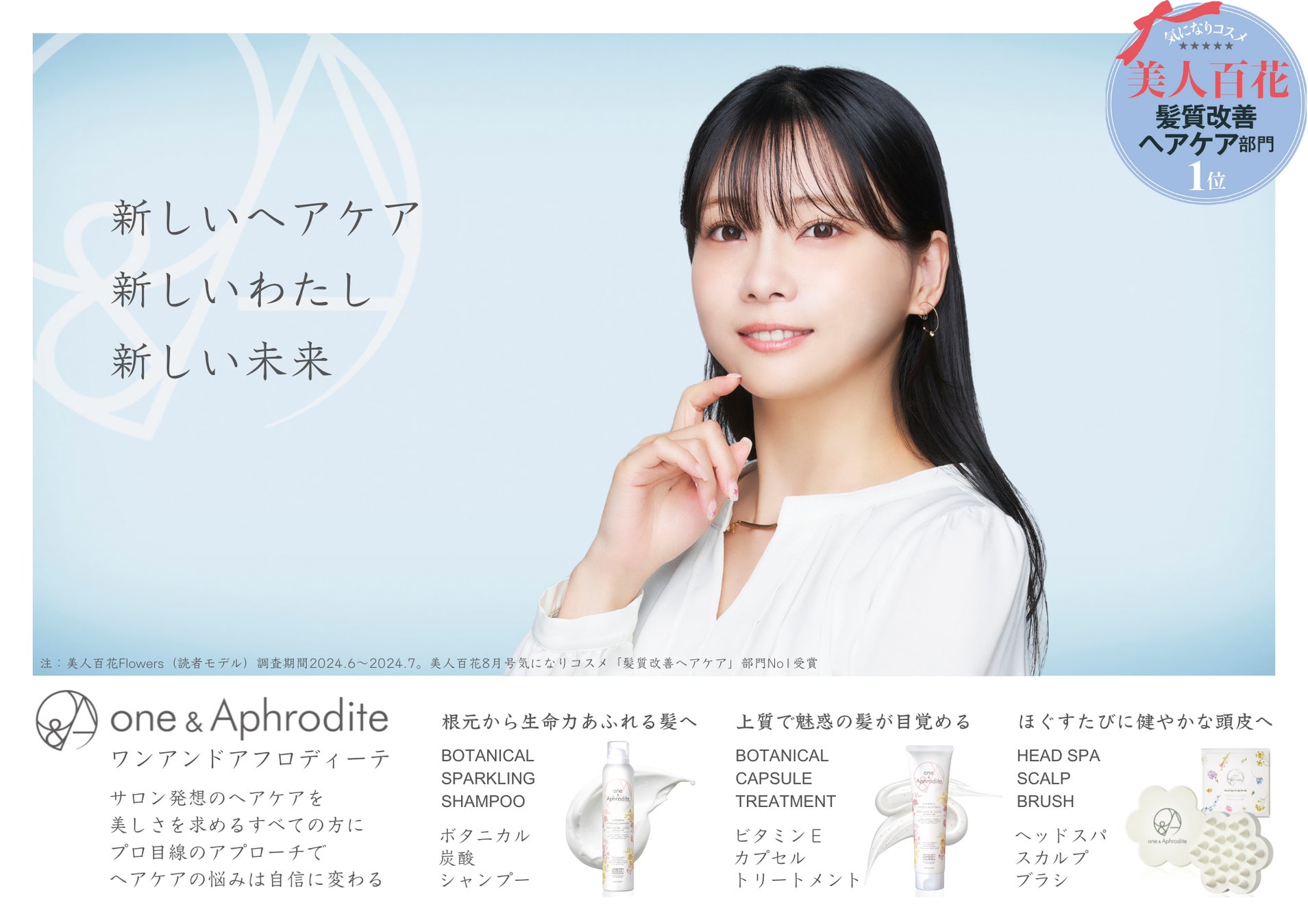 ヘアケアブランドone&Aphrodite(ワンアンドアフロディーテ)のボタニカル スパークリング シャンプー、ボタニカル カプセル トリートメント、ヘッドスパ スカルプブラシが、2024年7月31日(水)~9月3日(火)の期間限定で@cosme TOKYOの2F特設コーナーにて販売いたします。店頭にてモチモチ高濃度炭酸泡とつぶつぶビタミンEカプセルをご自由にお試しいただけますので、この機会にぜひご来店くださいませ。