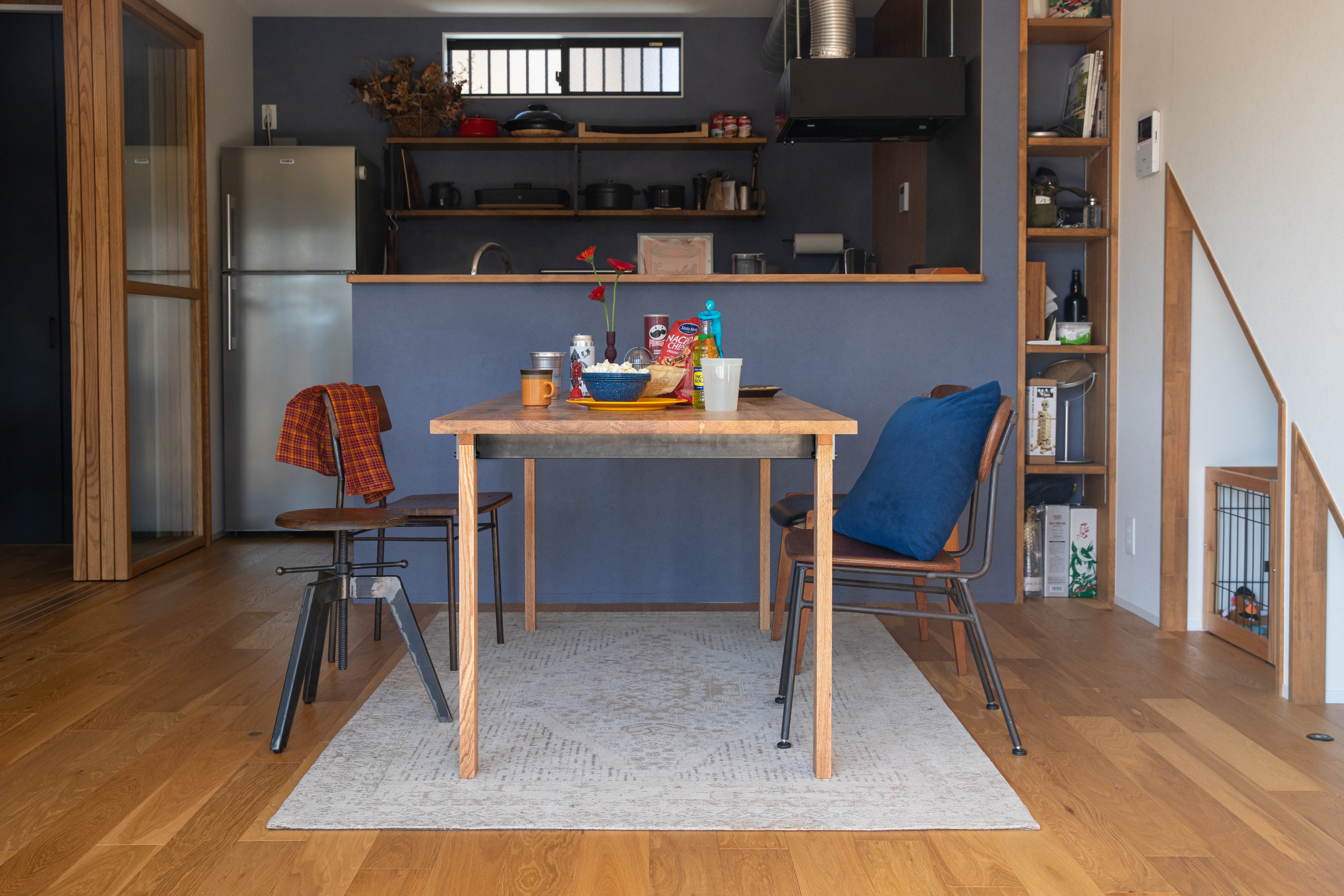 無垢のレッドオーク×黒皮鉄で、上質さと強度を両立したデザインです。
