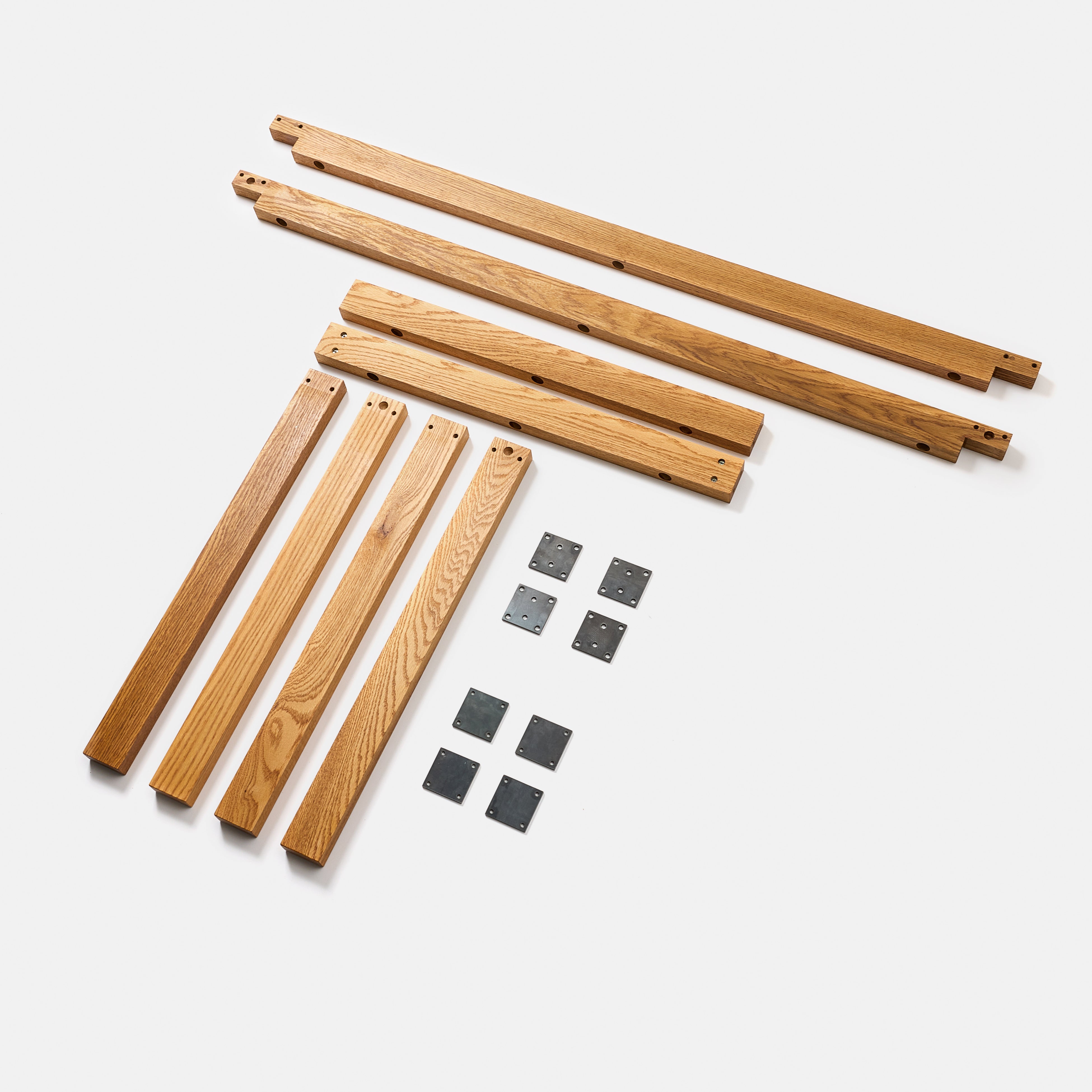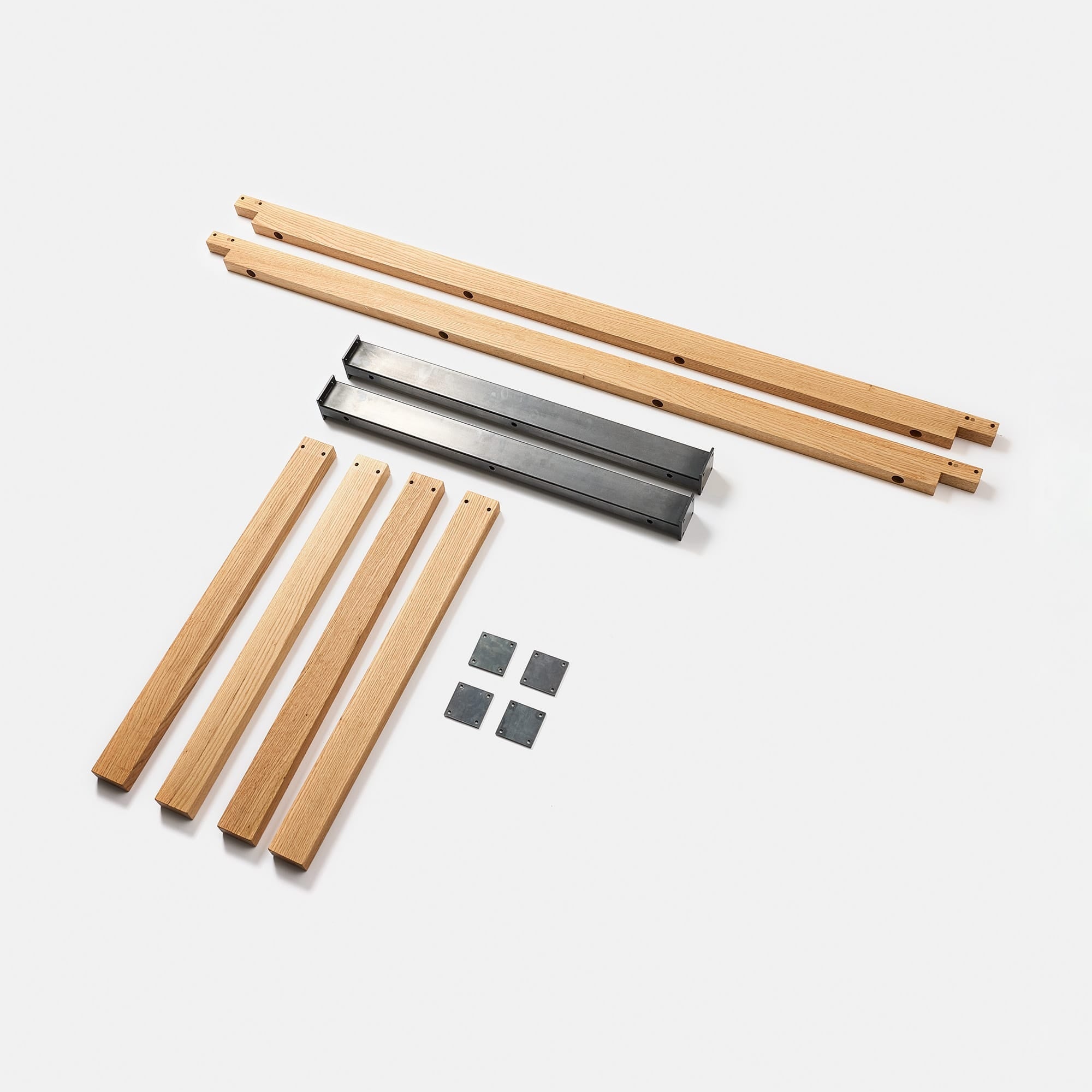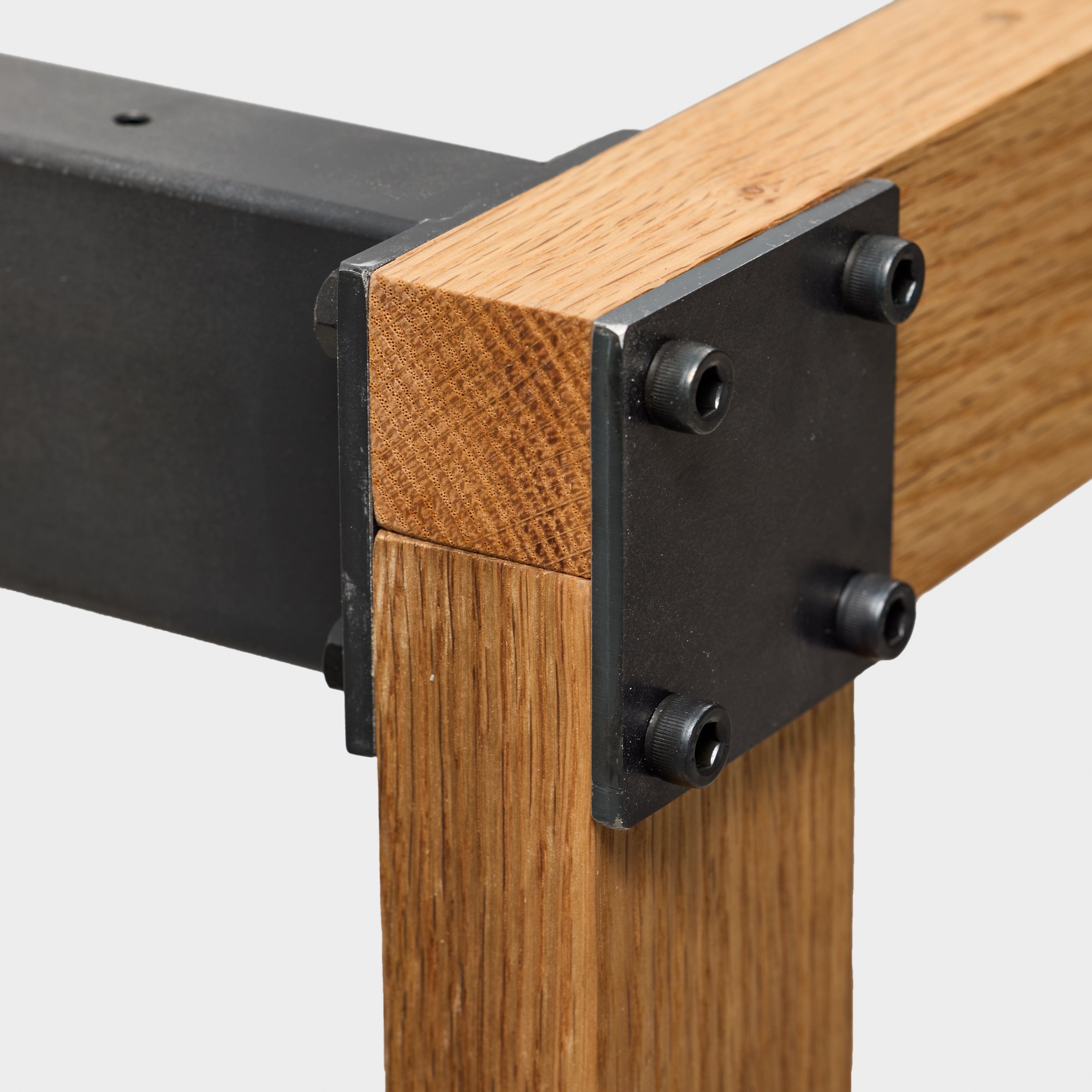 『木と鉄のテーブル脚』は、家具で人気な樹種であるレッドオークの無垢材を使用しており、力強い木目が他の家具や空間に負けない存在感を放ちます。オークは家具では定番の樹種ですが、組み立て式のテーブル脚となると、ほとんど選択肢にありませんでした。