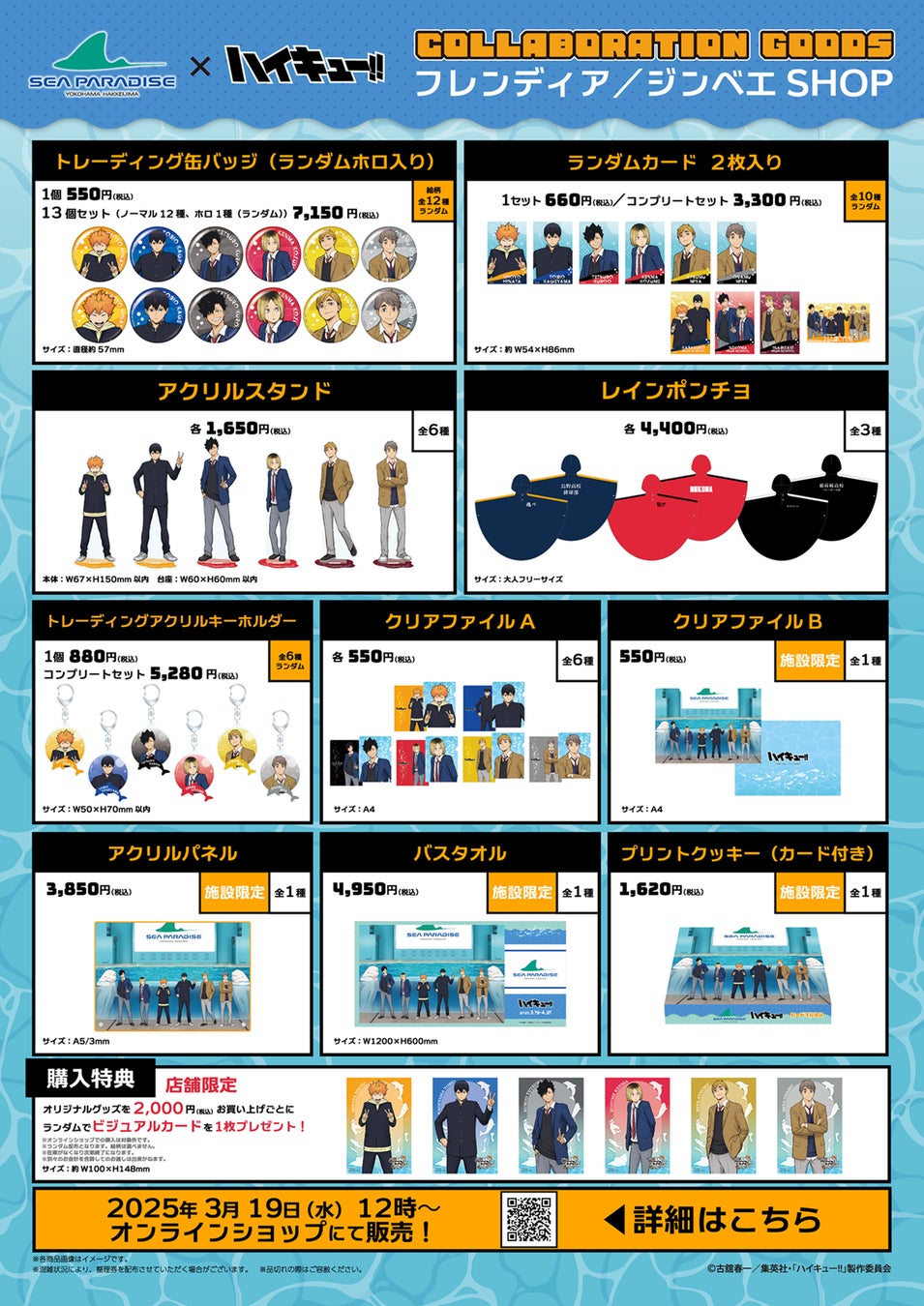 株式会社GK Marketing(本社:東京都千代田区、代表取締役社長:山本 真司)は、2025年3月19日(水)より、アニメ「ハイキュー‼」と、株式会社横浜八景島が運営する「横浜・八景島シーパラダイス」「上越市立水族博物館 うみがたり」「仙台うみの杜水族館」の3施設所巡回イベント、『ハイキュー!!アクアリウムキャラバン!!~横浜・上越・仙台~』において、新商品を販売いたします。