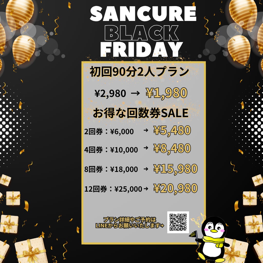 頑張る方の『心と身体を24時間サポートする』サンキュア三鷹店は期間限定でブラックフラデーを開催いたします。
