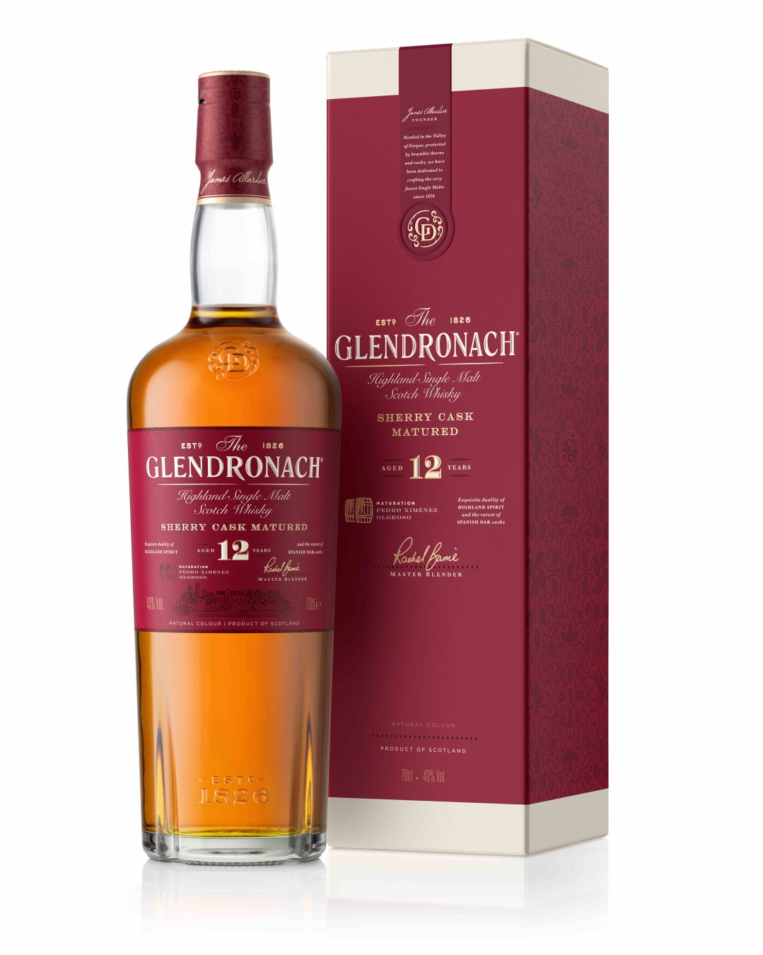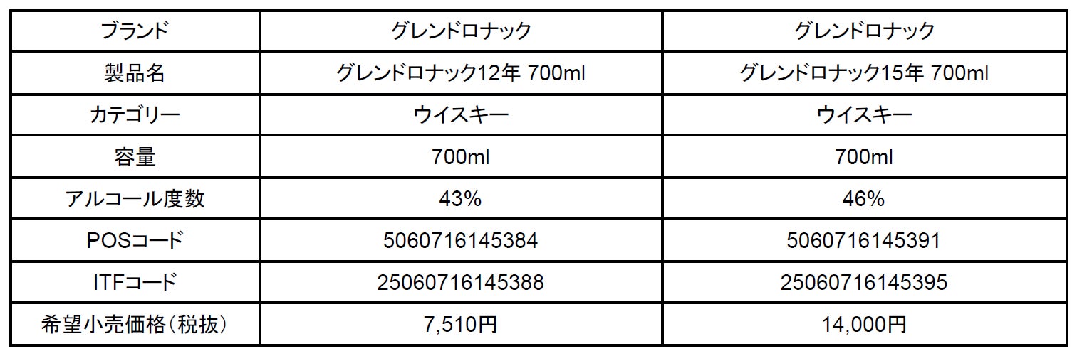 マスターブレンダーであるレイチェル・バリー女史によって厳選されたシェリー樽による、甘くて果実味のある風味とドライでナッツのような香りなどの芳醇なフレーバーが特徴の「グレンドロナック」を、味はそのままに、より多くのウイスキー愛飲家の方々へ、本製品の魅力を伝えるためパッケージを刷新しました。