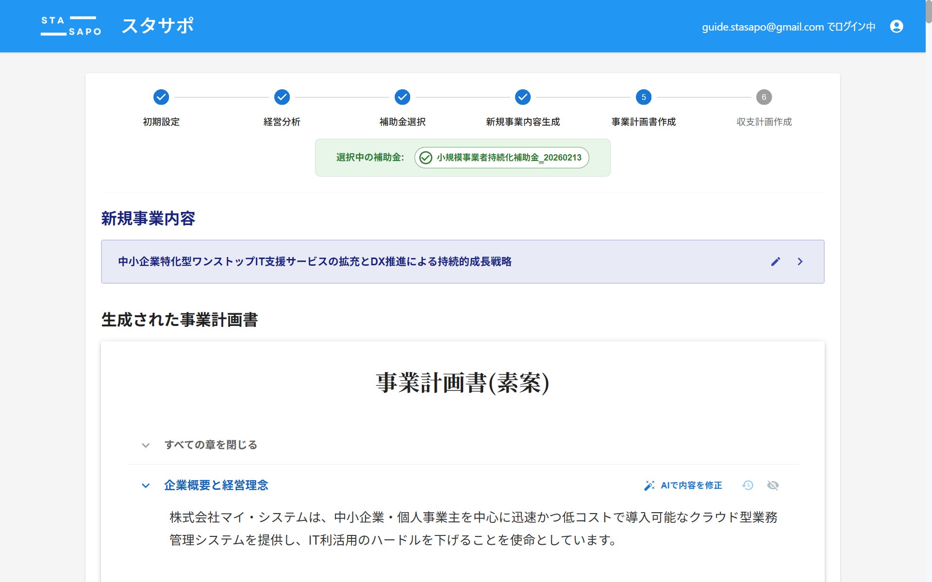 事業内容:補助金申請支援サービス「スタサポ」の開発・運営