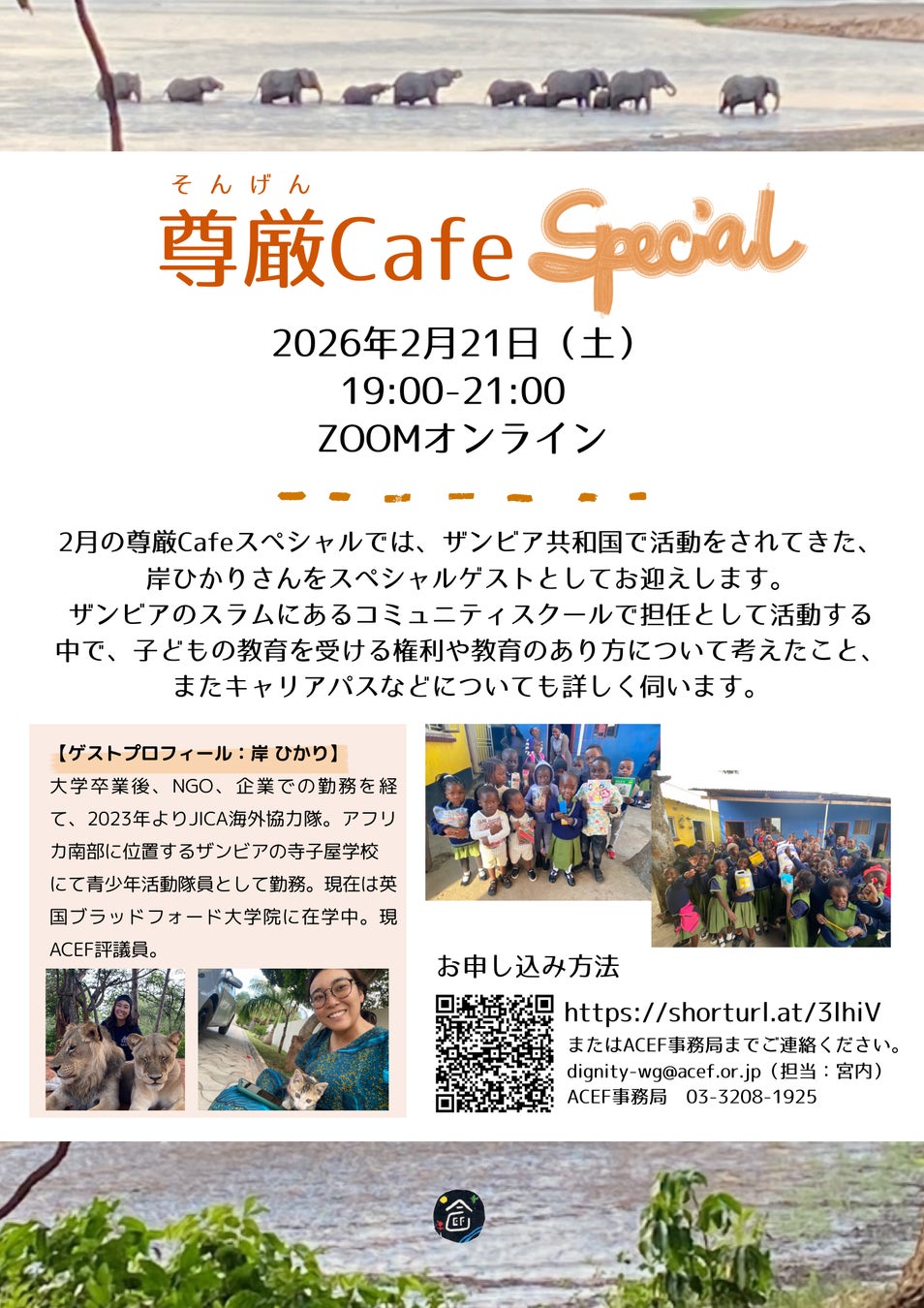 〈ACEF Youth〉尊厳(そんげん)メガネで見てみるザンビアの今 尊厳cafeスペシャル(オンライン)実施 【2026年2月21日(土)】