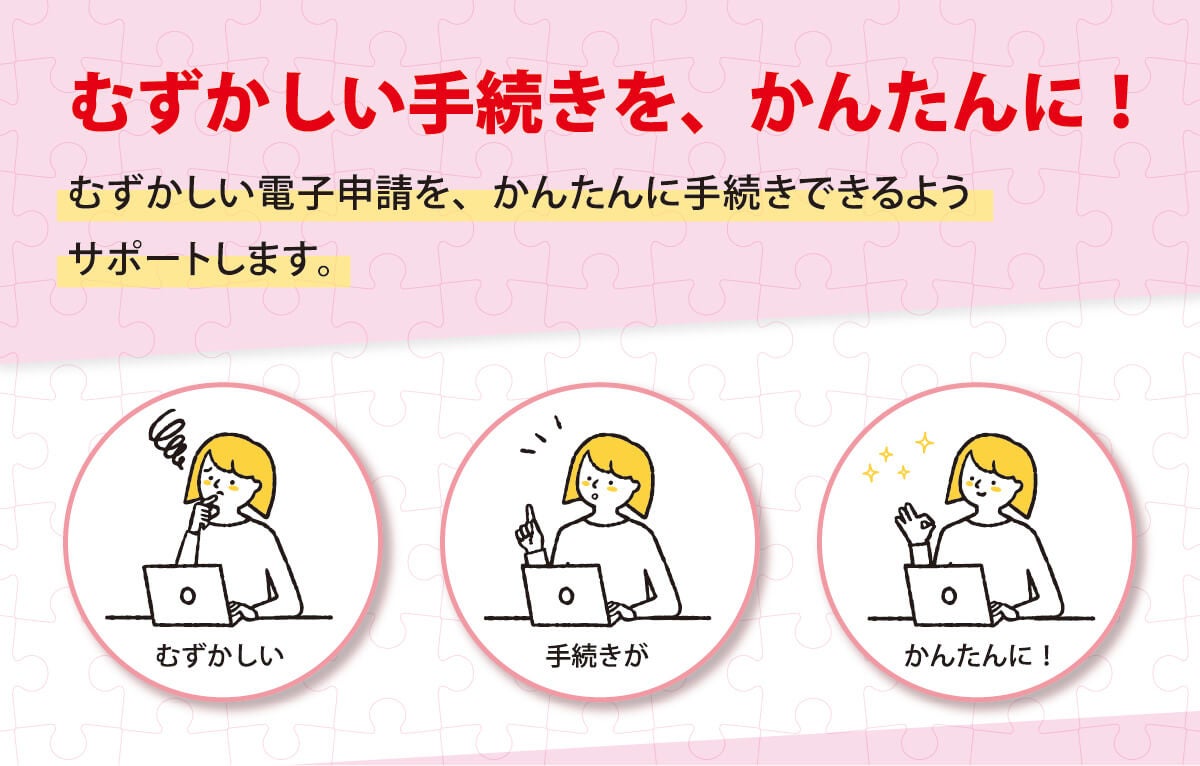 :むずかしい電子申請を、かんたんに手続きできるようサポートします。