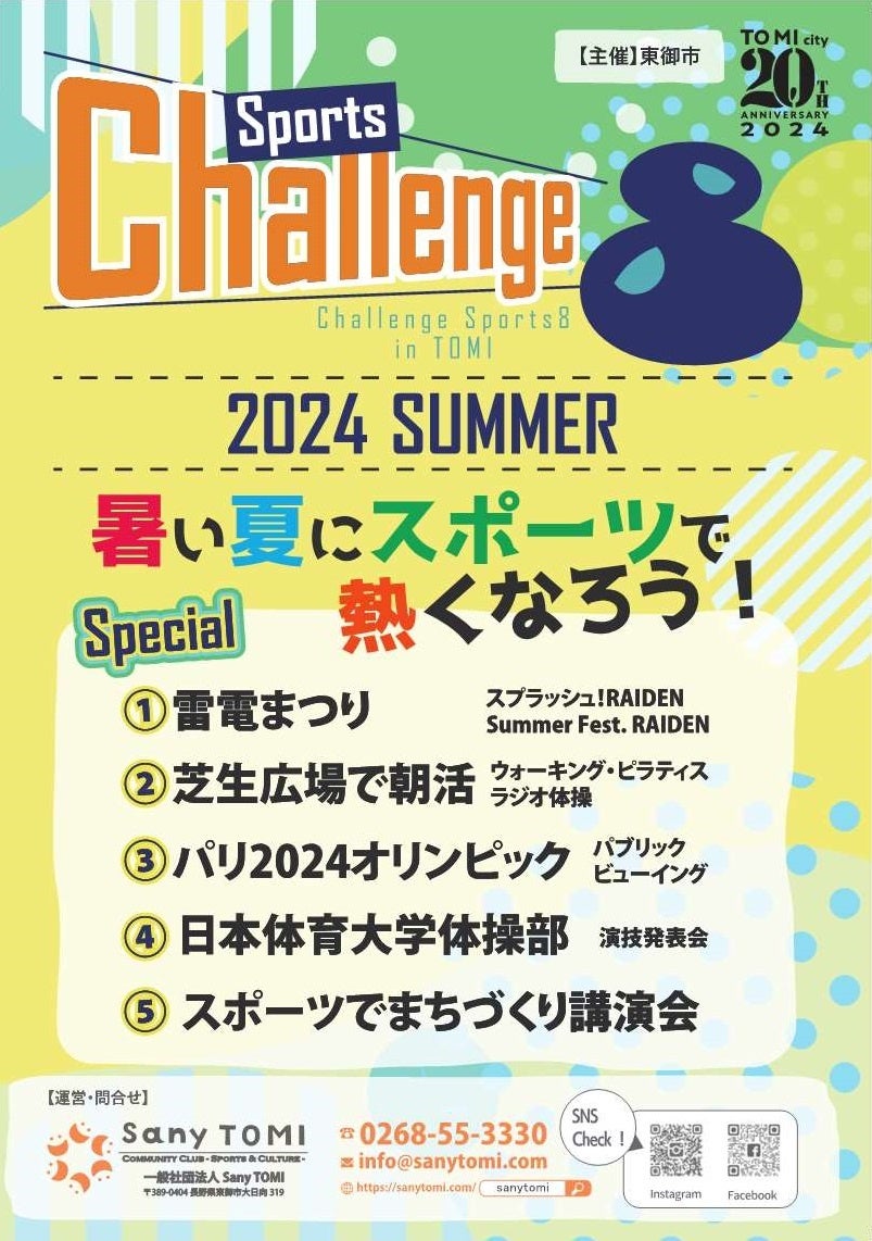 東御市は、日常生活における市民の運動・スポーツ習慣化と、新たな運動・スポーツチャレンジへのきっかけづくりとして新たなイベントスポーツ推進月間「チャレンジ・スポーツ・エイト」を開催します。