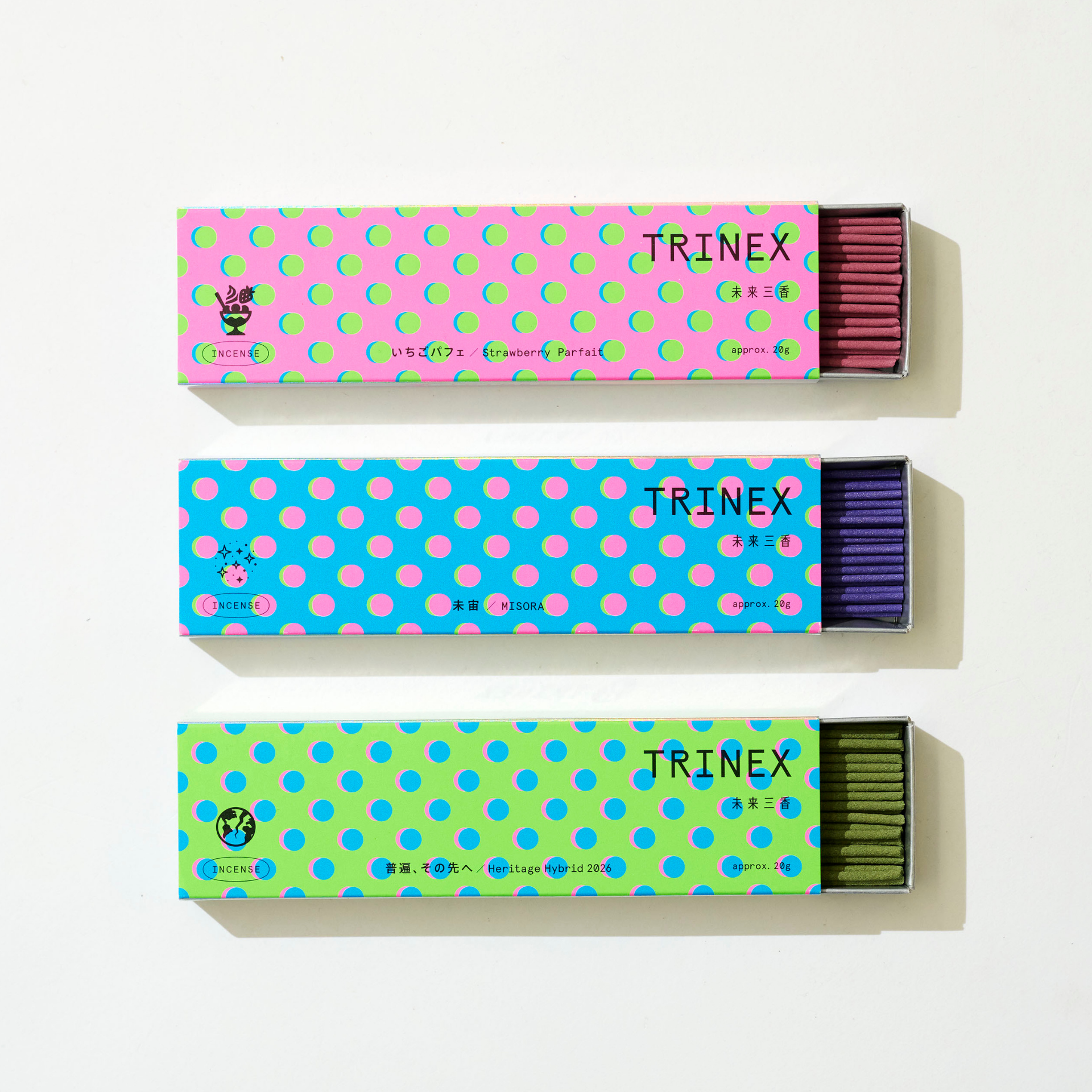 香り博実行委員会(鳩居堂・松栄堂・日本香堂)は、4月18日〈お香の日〉より開催される「香り博2026」にあわせ、香りの老舗3社による共創から生まれた限定お香シリーズ「TRINEX(トライネクス)〈未来三香〉」を数量限定で発売します。