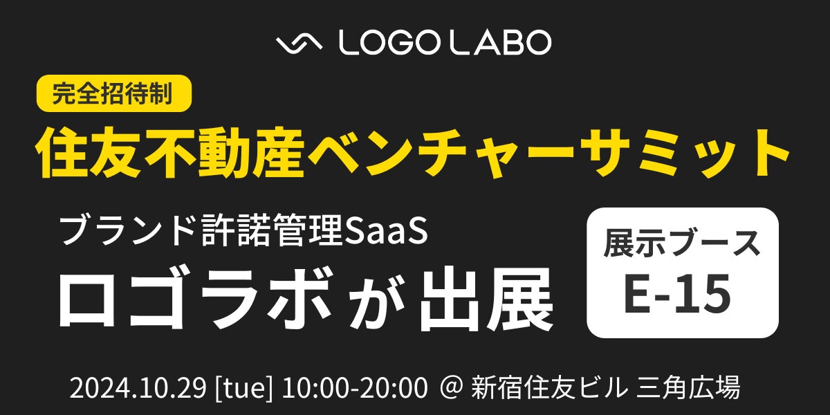 国内初 ※1 ブランド許諾管理SaaS「ロゴラボ」を提供する株式会社ロゴラボ(東京都中央区、代表取締役社長:野﨑 智裕、以下 当社)は、住友不動産株式会社(本社:東京都新宿区、代表取締役社長:仁島 浩順)が2024年10月29日(火)に開催する「住友不動産ベンチャーサミット」の第2回にブース出展することをお知らせいたします。なお本イベントは、昨年1,600名超が参加した巨大ビジネスマッチングイベントで、新宿住友ビル三角広場で開催されます。