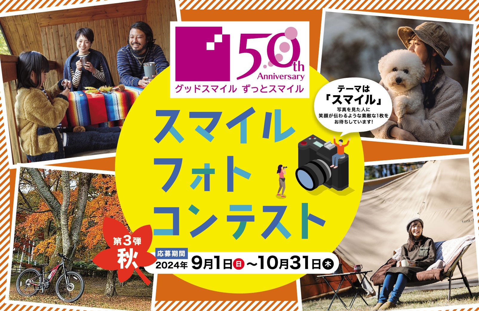 株式会社カンセキでは、創業50周年を記念したフォトコンテストを開催。第3弾「秋コンテスト」の応募は9月1日~10月31日、「スマイル」をテーマに、写真を見た人に笑顔が伝わるような1枚を募集します。