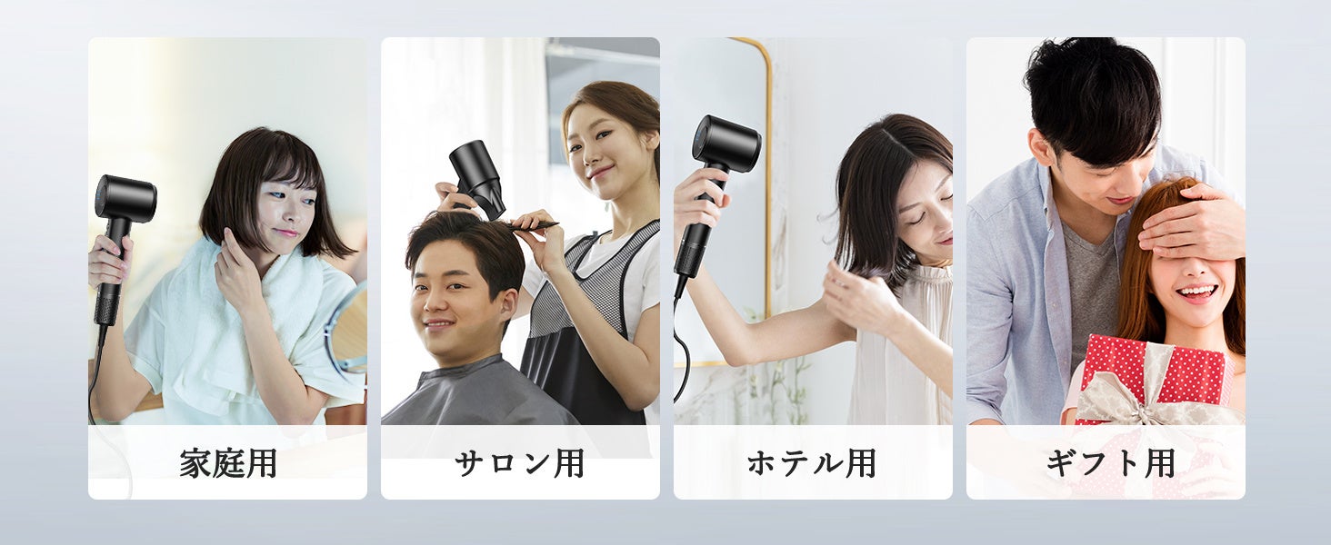 ハイスピードドライヤーは、高濃度2億マイナスイオン機能を搭載されて、髪に潤い、静電気を軽減し、髪を保護し、光沢のある髪を与えます。