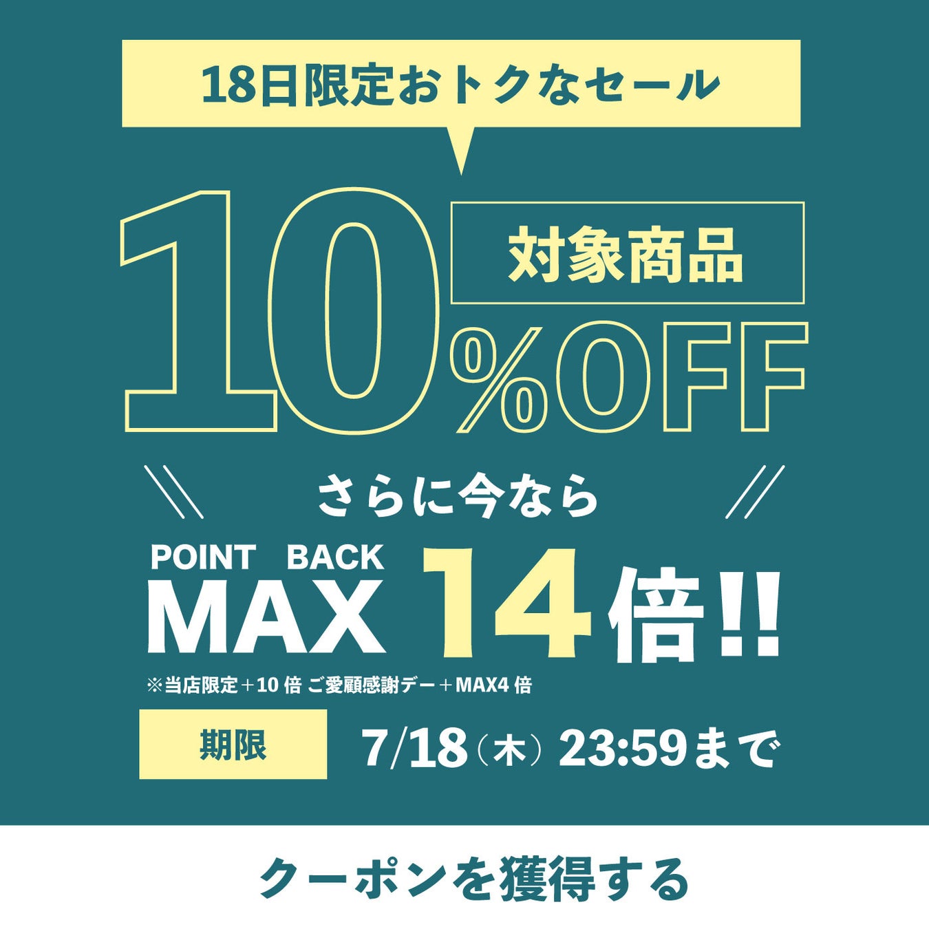 2024年7月18日(木)00:00-23:59の24時間限定!楽天市場の日にて対象商品10%OFF+ポイント10倍で超お得なキャンペーン。さらにポイント4倍へのエントリーで最大14倍!