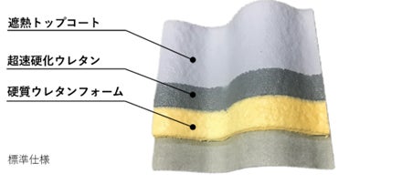 ハルスハイブリッド型樹脂を使用したトップコートにより、耐久性、遮熱性、非汚染性が向上し長期間にわたり美観を維持