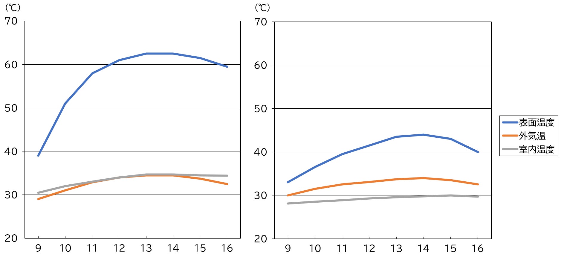 ※ 鉄筋コンクリート造3階建て住宅での測定データ・表面温度:屋根表面,室内温度:3階居室