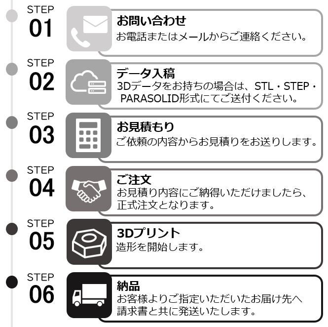3Dデータをお持ちで無いお客様でも、3DスキャナーやCTスキャナーを使用した3Dデータ作成サービスや2次元図からのモデリングの対応も可能ですので、まずはお気軽にご相談ください。