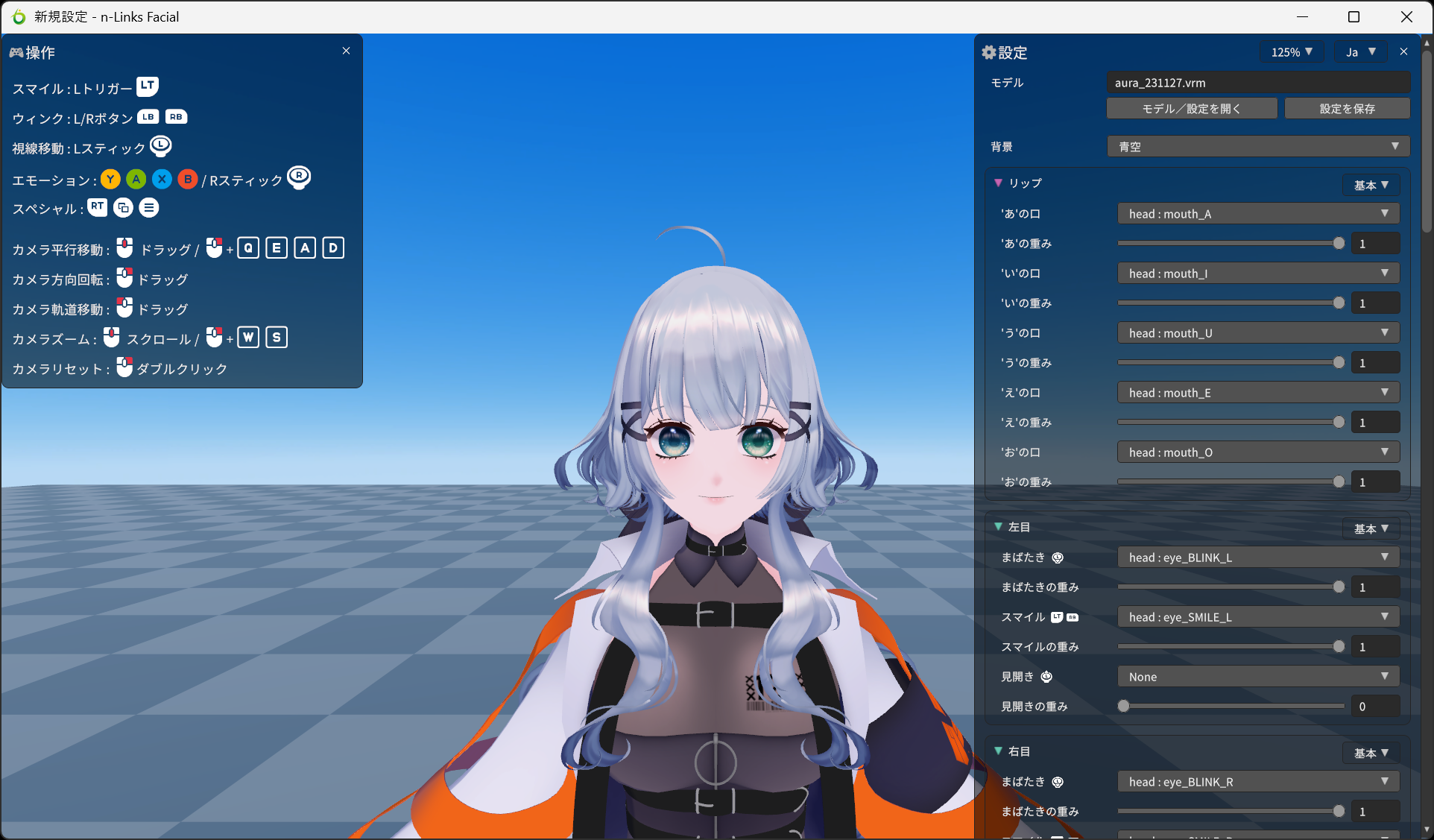 『n-Links Retarget』の他、表情操作アプリケーション『n-Links Facial』も今回同時にリリースいたします。音声入力によるリップシンクに対応し、キーボード操作以外にゲームコントローラーのアナログ操作による柔軟な表情コントロールが特長です。