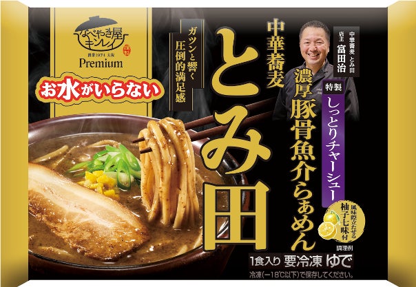 株式会社キンレイ(本社:京都市伏見区、代表取締役社長:白潟昌彦)は、累計2億食以上※1を量販店やドラッグストア、コンビニエンスストアなどで販売する、冷凍具付きうどん・ラーメン売上No.1ブランド※2「お水がいらない」シリーズから、“こだわり尽くした至極の逸品”をコンセプトにしたプレミアムラインの第2弾となる新商品『お水がいらないプレミアム 中華蕎麦とみ田濃厚豚骨魚介らぁめん』を2026年3月5日(木)より、全国の量販店の冷凍コーナー等にて順次発売いたします。