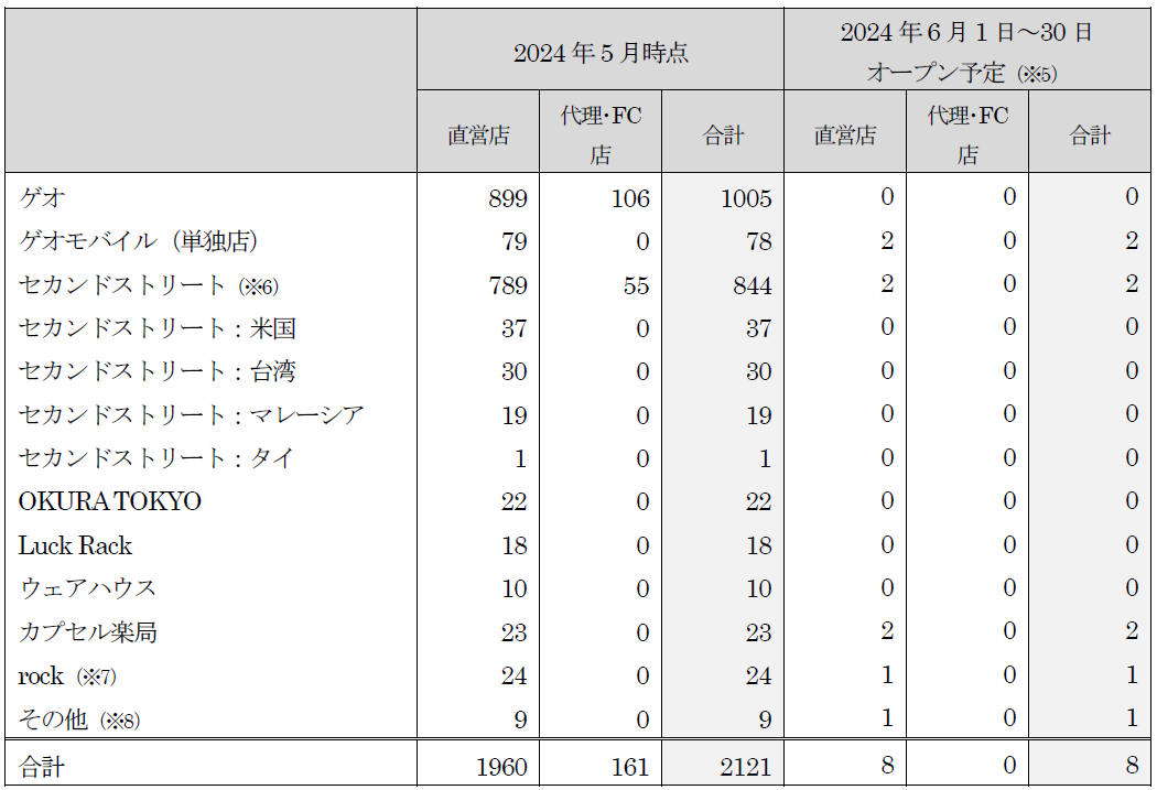 ※6)スーパーセカンドストリート、セカンドアウトドア、ジャンブルストア、Doki-Doki、Oki-Doki含む