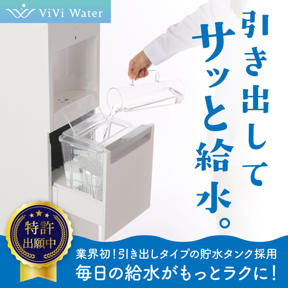 ViVi Waterは、水道水を注ぐだけでいつでも美味しい水が飲める浄水型ウォーターサーバーです。