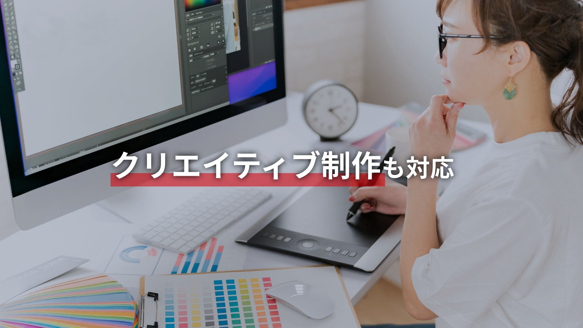 また弊社は映像制作の専門部署があるため、動画広告のクリエイティブ制作も対応しております。そのため、ターゲットに効果的な動画の制作と、広告の配信結果に基づいた動画の改善をスピーディに行え、広告効果を最大化することが出来ます。