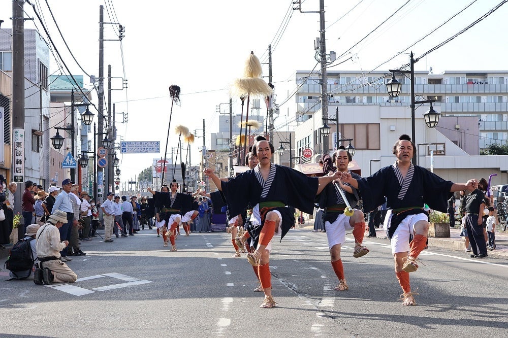 旧大島宿(現在の太田市西本町)において、江戸時代後期から継承されている伝統行事「大名行列」が10月13日に10年ぶりに復活しました。太田市大名行列保存会を中心に市民約70人が当時の衣装をまとい毛槍を投げ合うなど大名行列を再現しました。普段は車通りの多い本町通りもこの日は江戸時代へとタイムスリップし、多くの方が大名行列を楽しんでいました。
