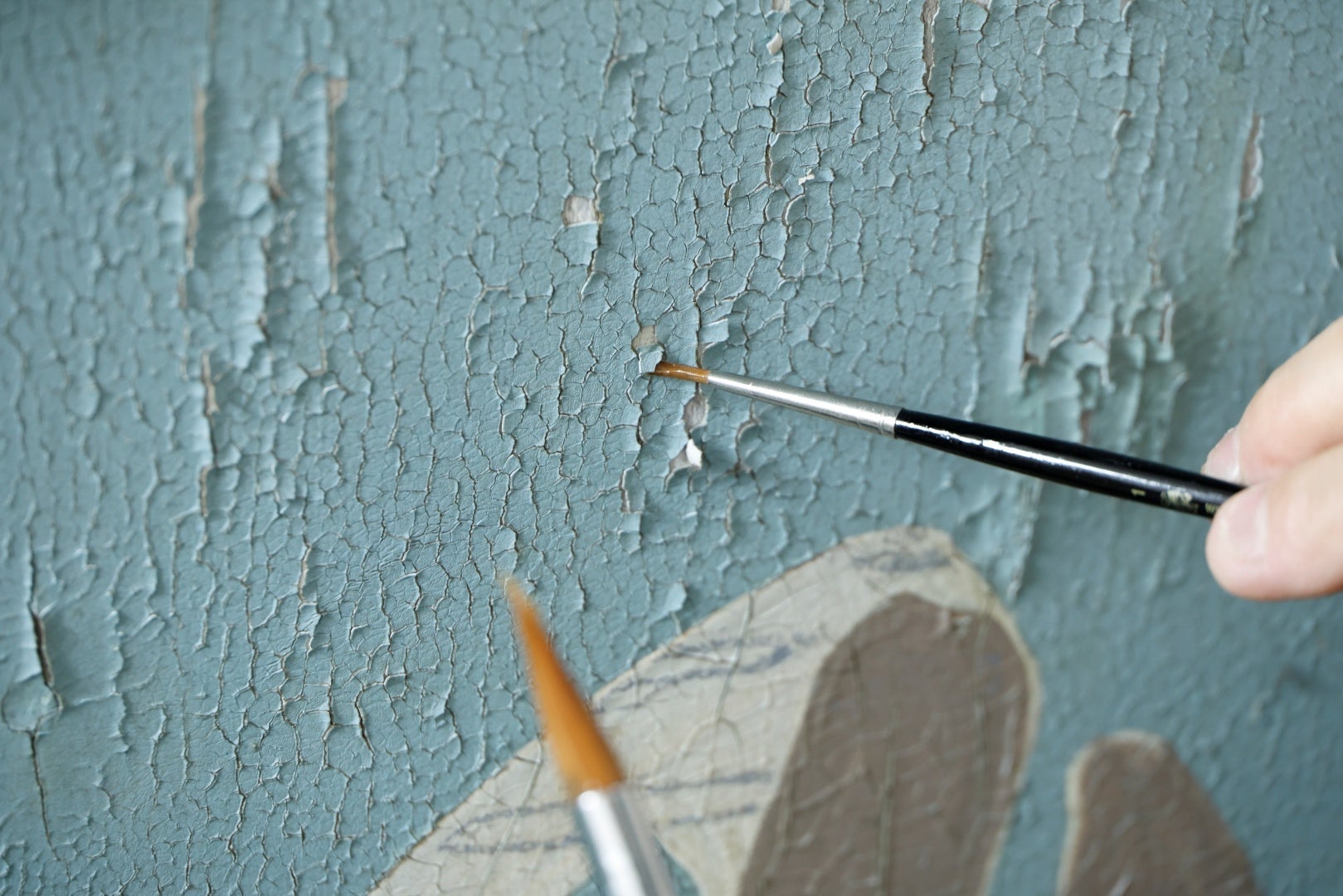 小さなカンヴァス画に施すのと同じ緻密で丁寧な修復作業が、巨大な壁画に対して半年以上かけて行われました。作業を担った「有限会社修復研究所二十一」は、前回、2002年の修復も手がけています。