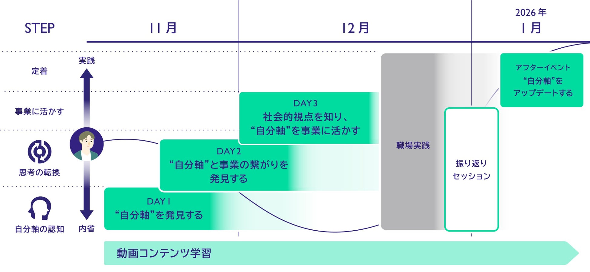本プログラムでは、自分を正しく認知し、自分を活かして事業や社会の価値を高められる人材の育成を通じて、躍動する組織づくりを後押しします。