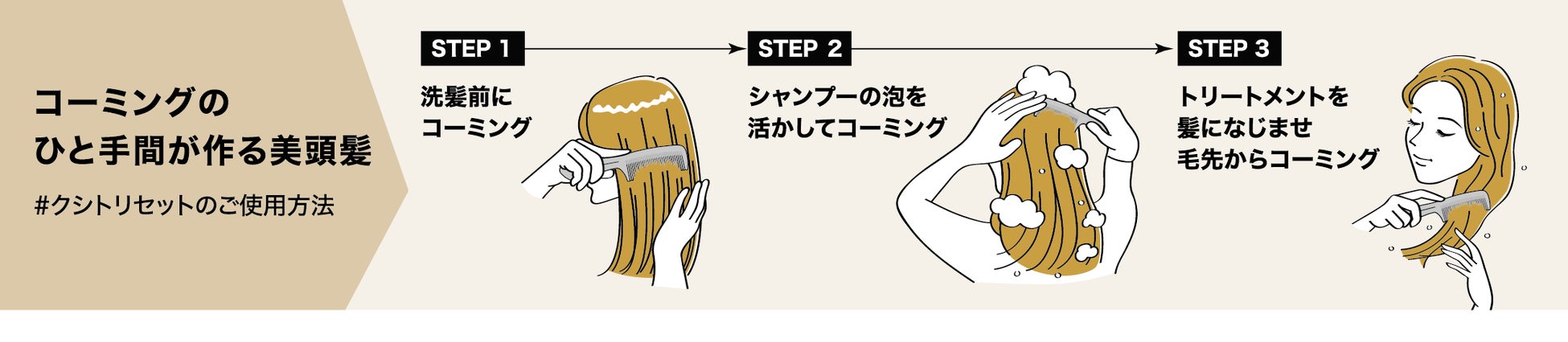 コームとはじめる、美容液トリートメント。ラブクロム専用設計トリートメント&シャンプーで育む、浸透ヘアケア美髪習慣。