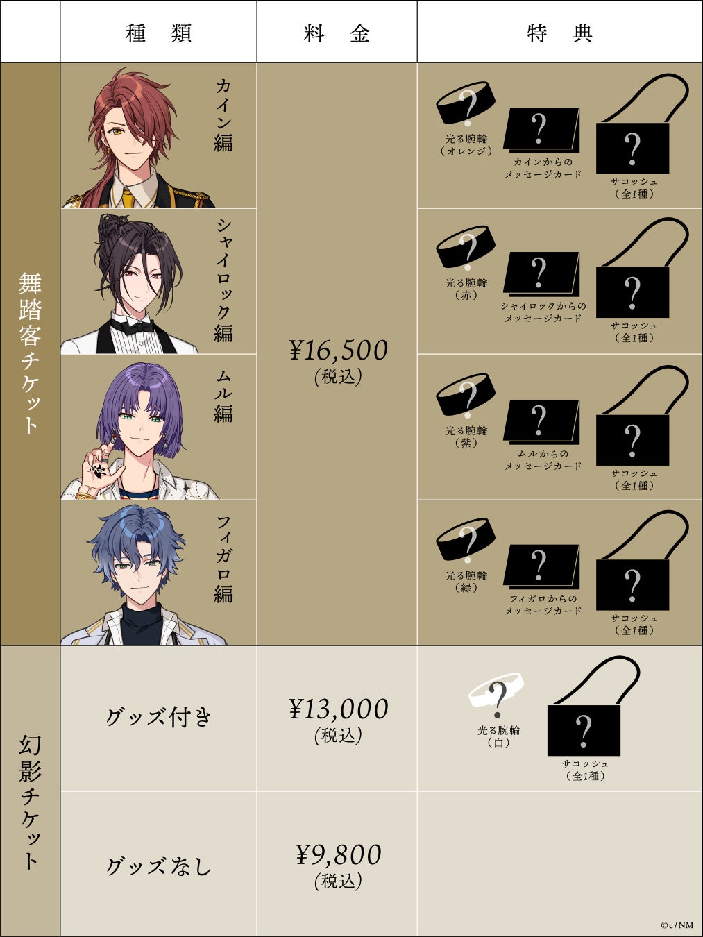 ※舞踏客チケット特典と幻影チケット(グッズ付き)特典の「光る腕輪」は異なる形状のものを予定しております。
