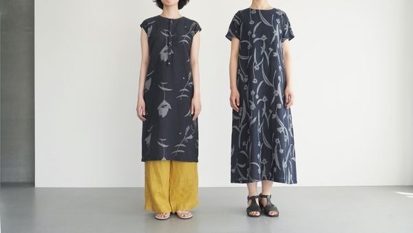 日本の産地と手を組み服作りをしているPAL’LAS PALACE(パラスパレス)。新潟県見附市のマンガン染の技術を用いた生地を作り、この数年、夏の定番として洋服を仕立てています。暑い季節にさらりと着られるリネンコットン素材、和と洋のバランスがほどよいデザインで、例年待ちわびている方も多いアイテムです。和服から生まれた世界にここだけの染め絣、日本の夏の風情になじむ装いを今年も提案いたします。