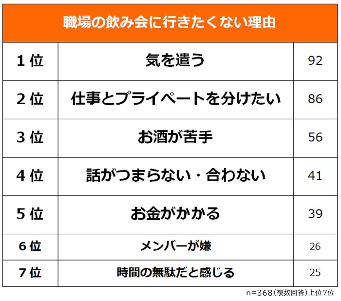 【職場の飲み会に行きたくない理由ランキング】社会人500人アンケート調査