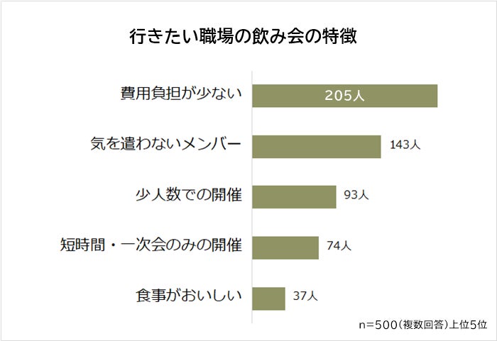 ・行きたいと思える職場の飲み会は「費用負担が少ない」