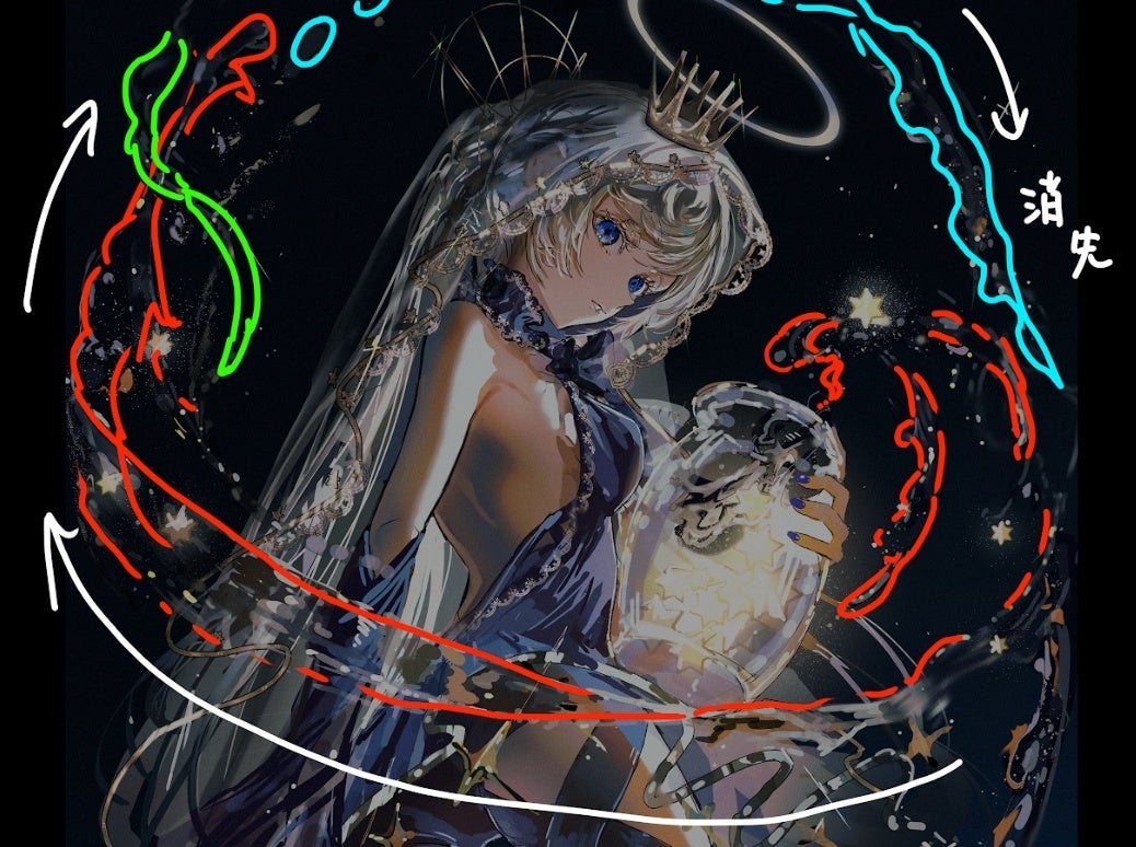 本講座では、イラストの土台となる構図作りと、より魅力的に魅せるためのエフェクト技法を活用して、よりハイクオリティなキャラクターイラストを完成させます。