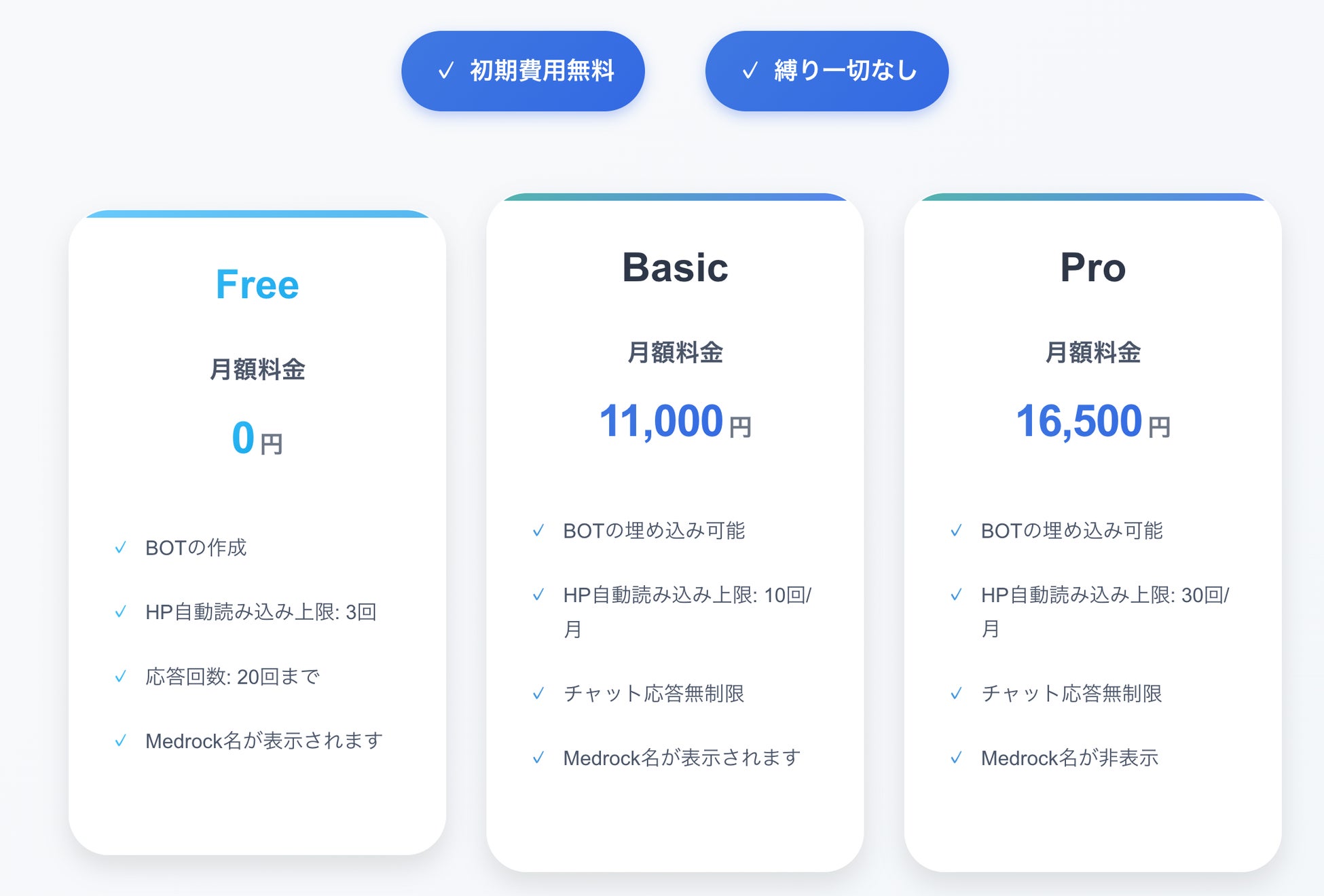 Medrockの10分AIBOTの料金形態は、次のようになっています。