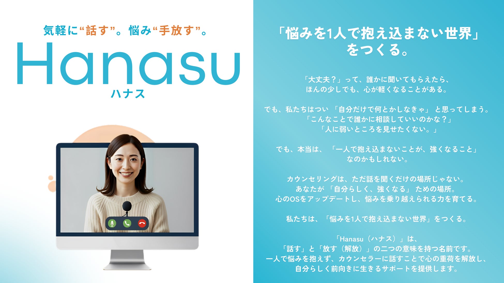 気軽に"話す"。悩み"手放す"。個人・企業向けオンラインカウンセリングサービス「Hanasu ハナス」が誕生。