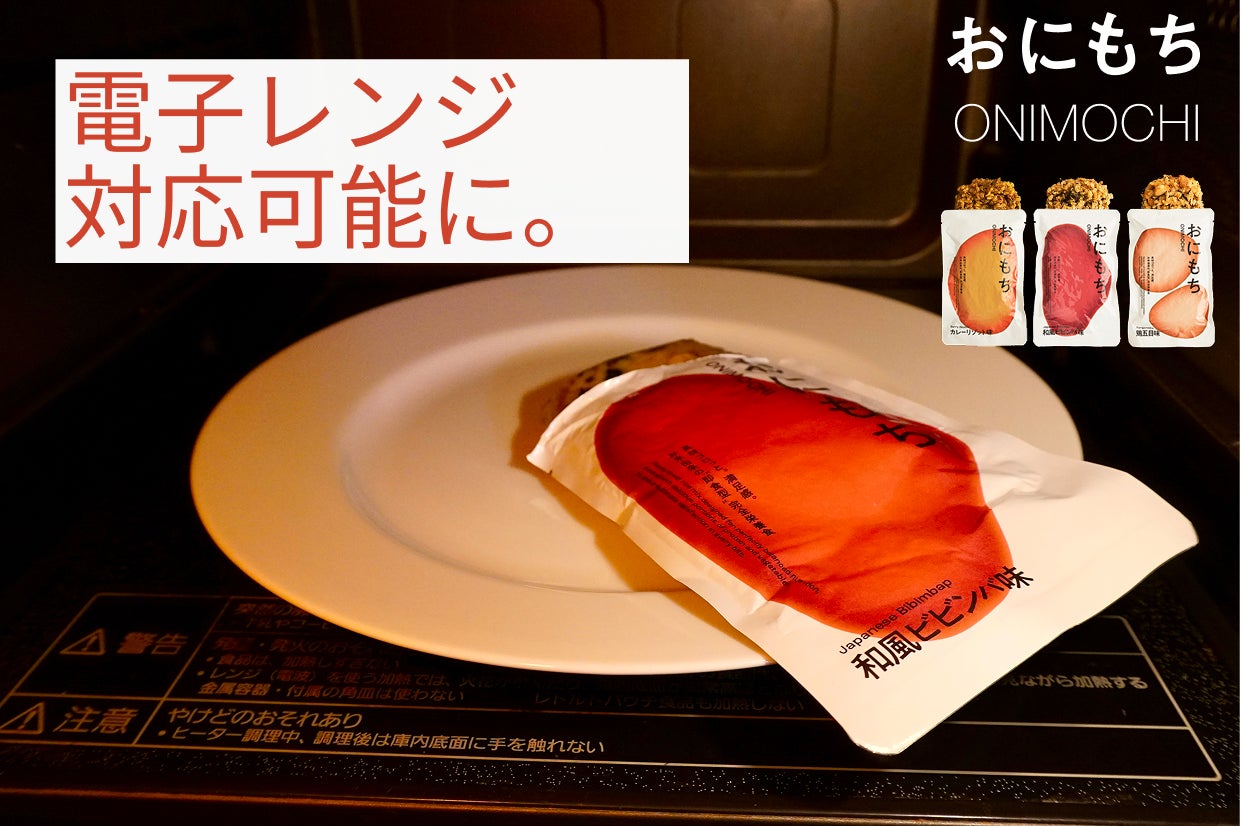 これまで「おにもち」は、レトルト容器から中身を取り出して電子レンジで加熱する、もしくは容器のまま湯煎する方法で温めていただく必要がありました。