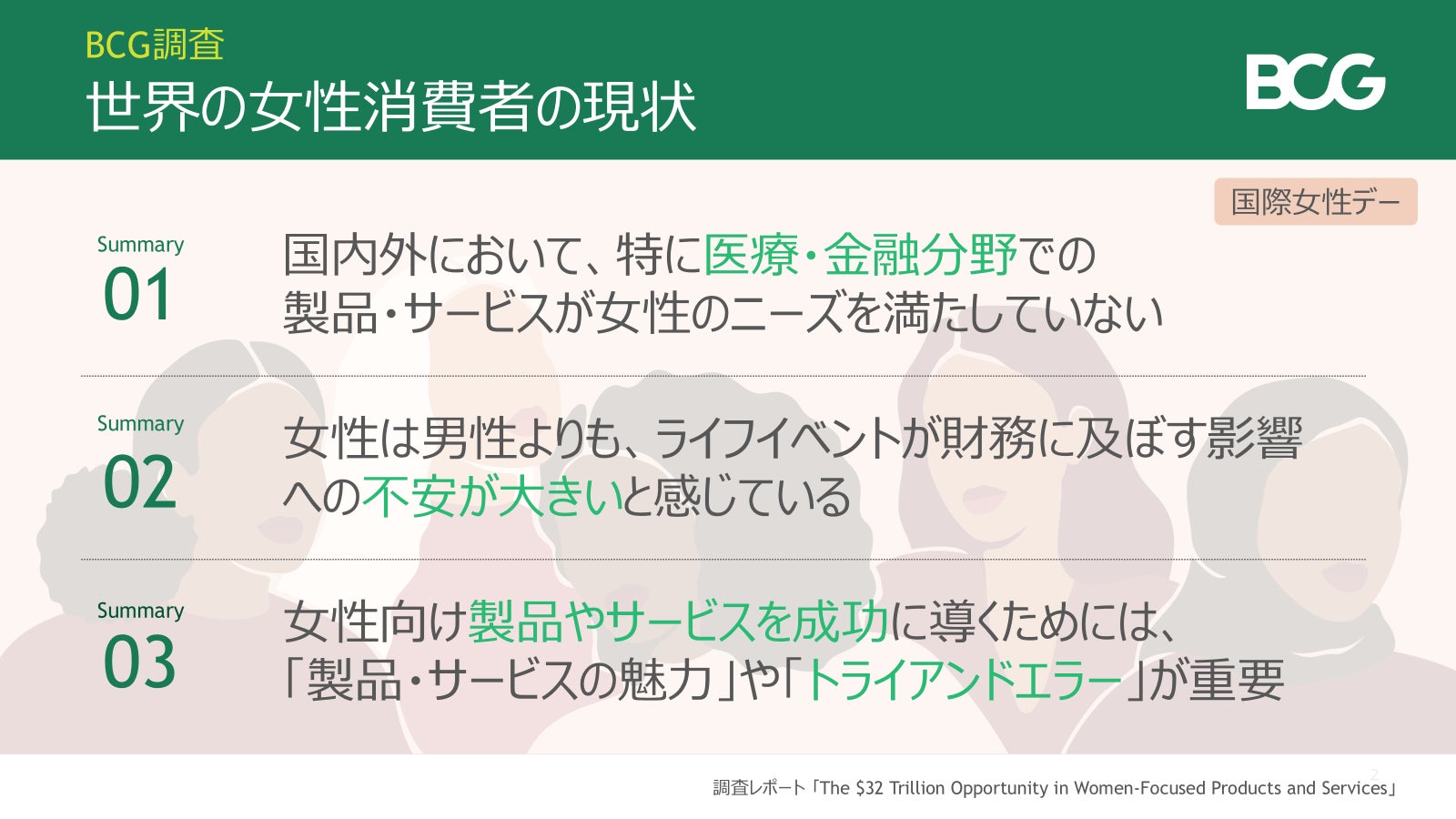 【BCG最新調査】女性消費者は既存の製品・サービスに不満。32兆ドル規模の市場に機会損失