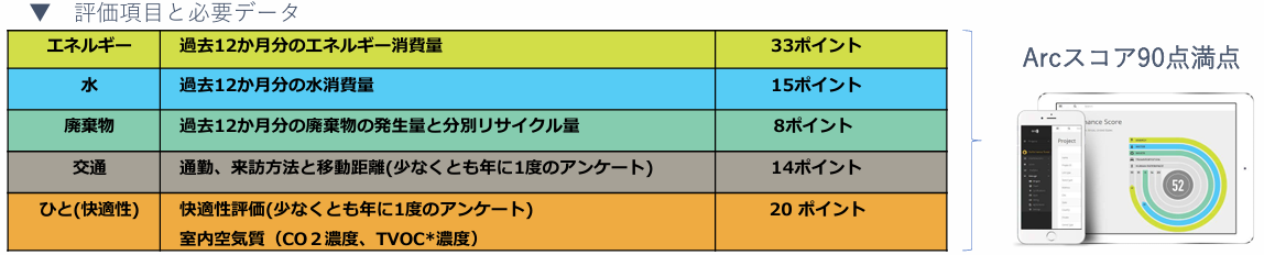 その中でも、LEED® O+M v4.1は、既存建物の既存建物の運用・維持管理段階に焦点を当てた評価です。BD+C(新築版)と異なり、認証取得において、既存建物の環境性能を簡便にスコア化してくれるArcを利用できるのが特徴です。