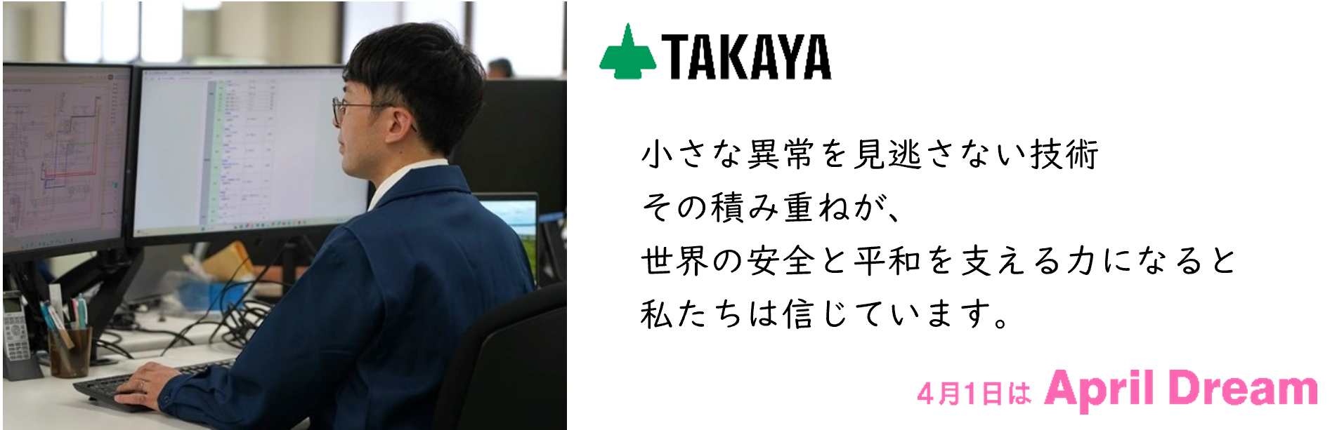 当社は、4月1日を夢を発信する日にしようとするApril Dreamに賛同しています。このプレスリリースは「タカヤ株式会社 産業機器事業部」の夢です。